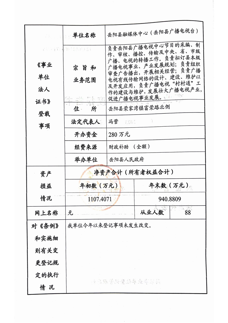 岳阳县融媒体中心法人年度报告书