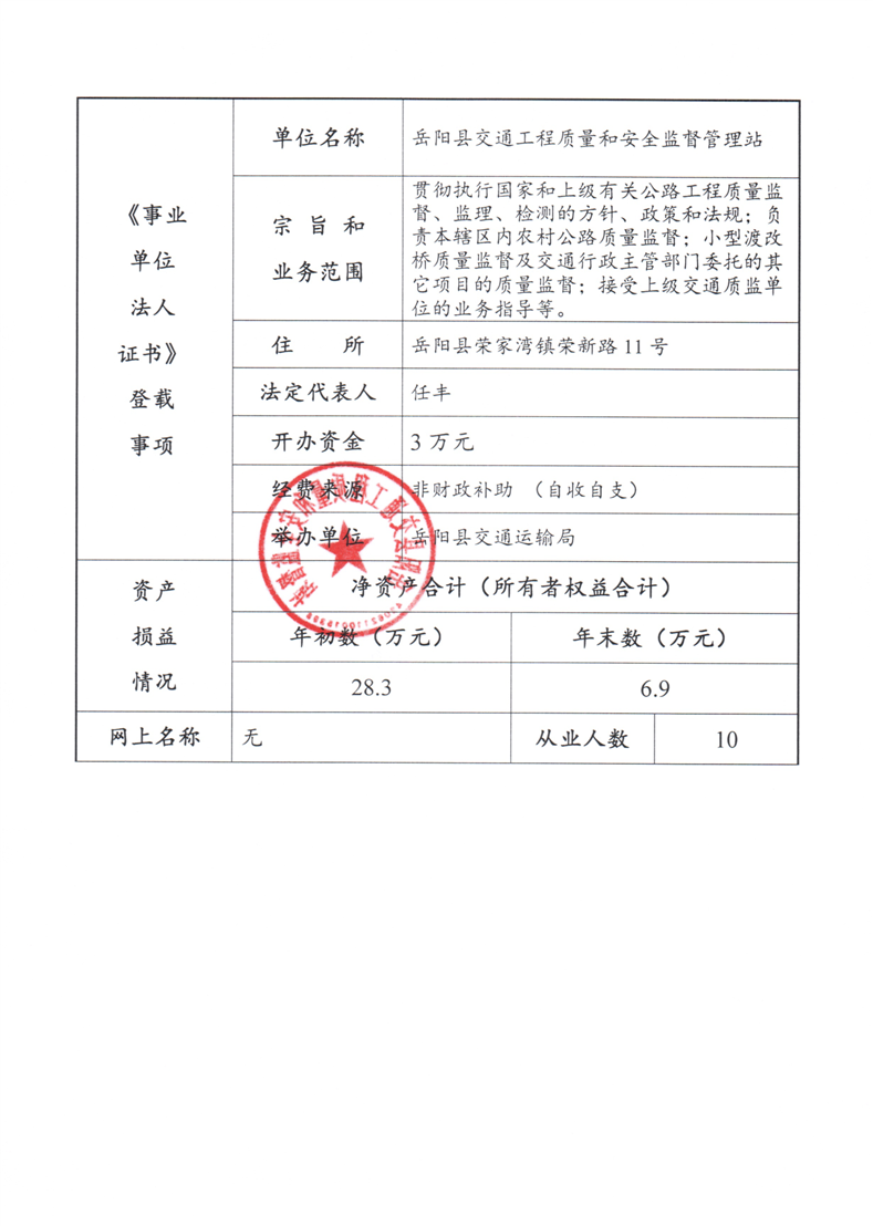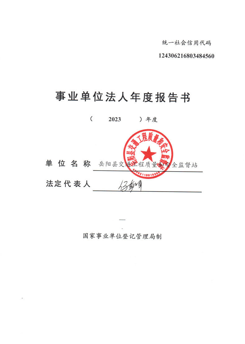 岳阳县交通工程质量和安全监督站2023年度事业单位法人年度报告书