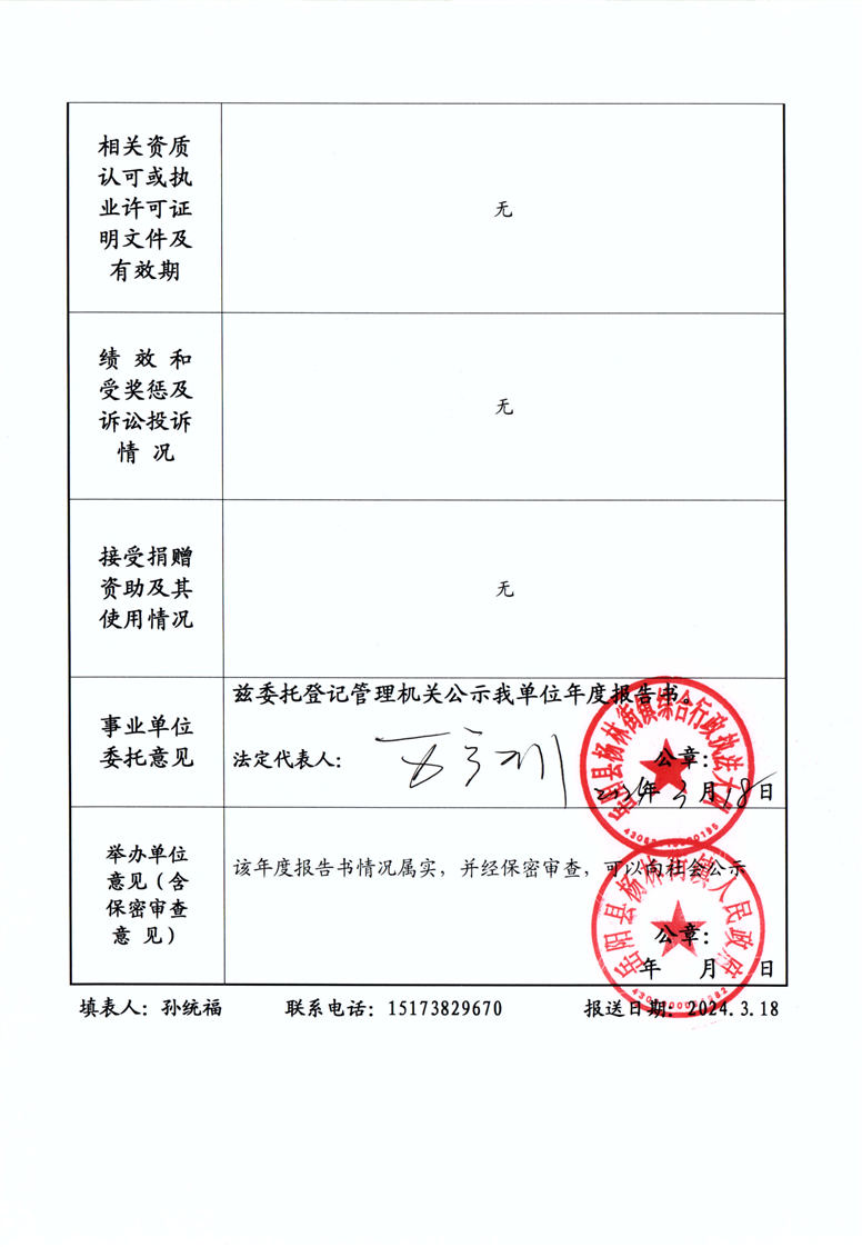 事业单位法人2023年度报告公示