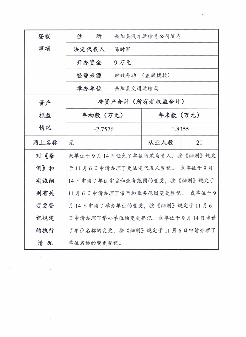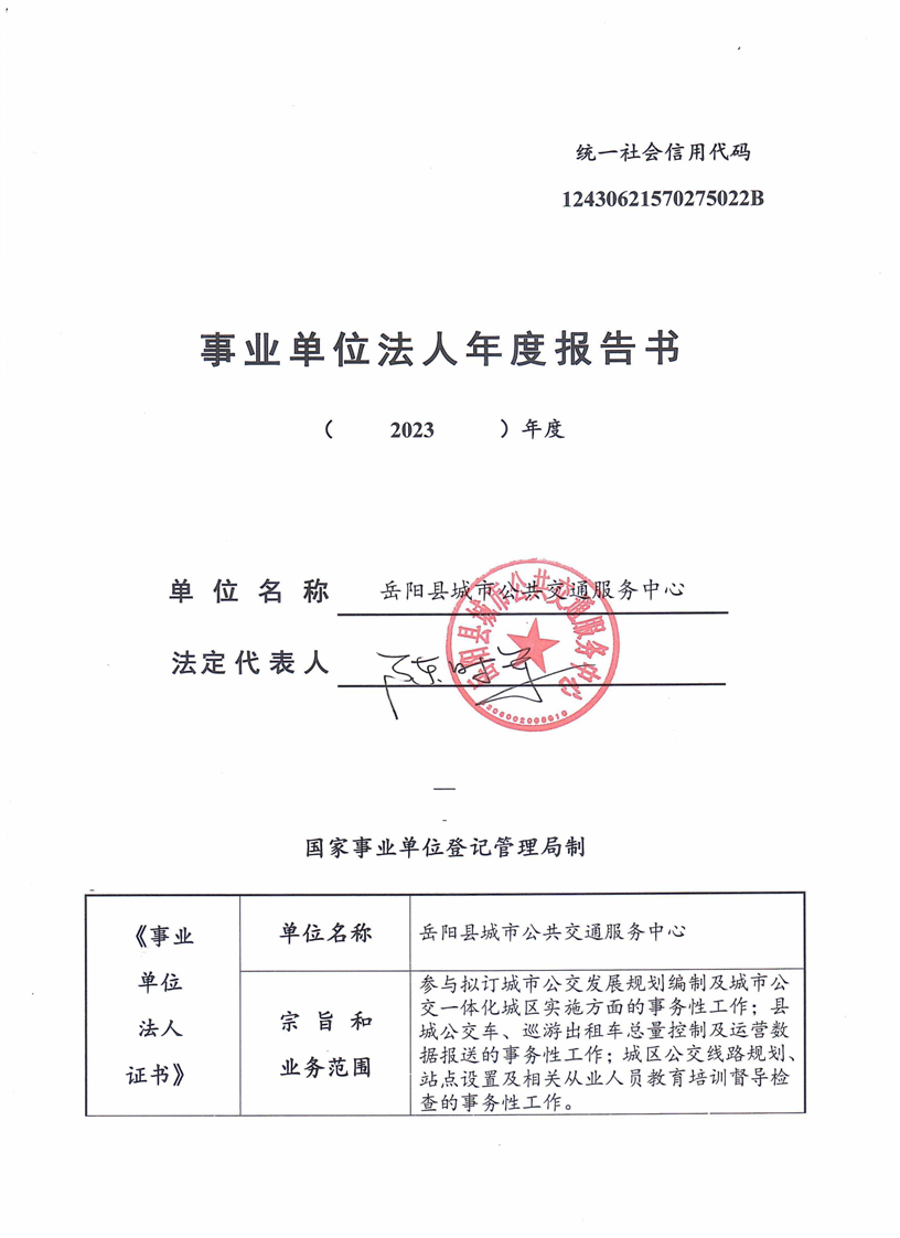 岳阳县城市公共交通服务中心2023年度事业单位法人年度报告书