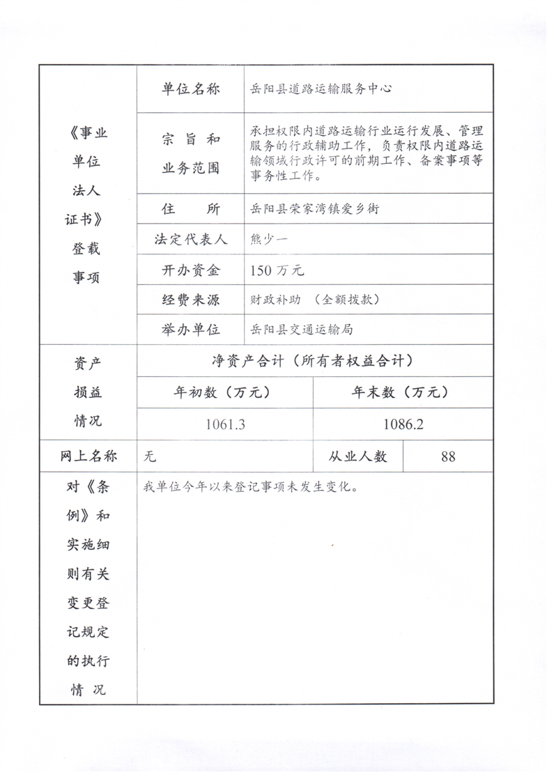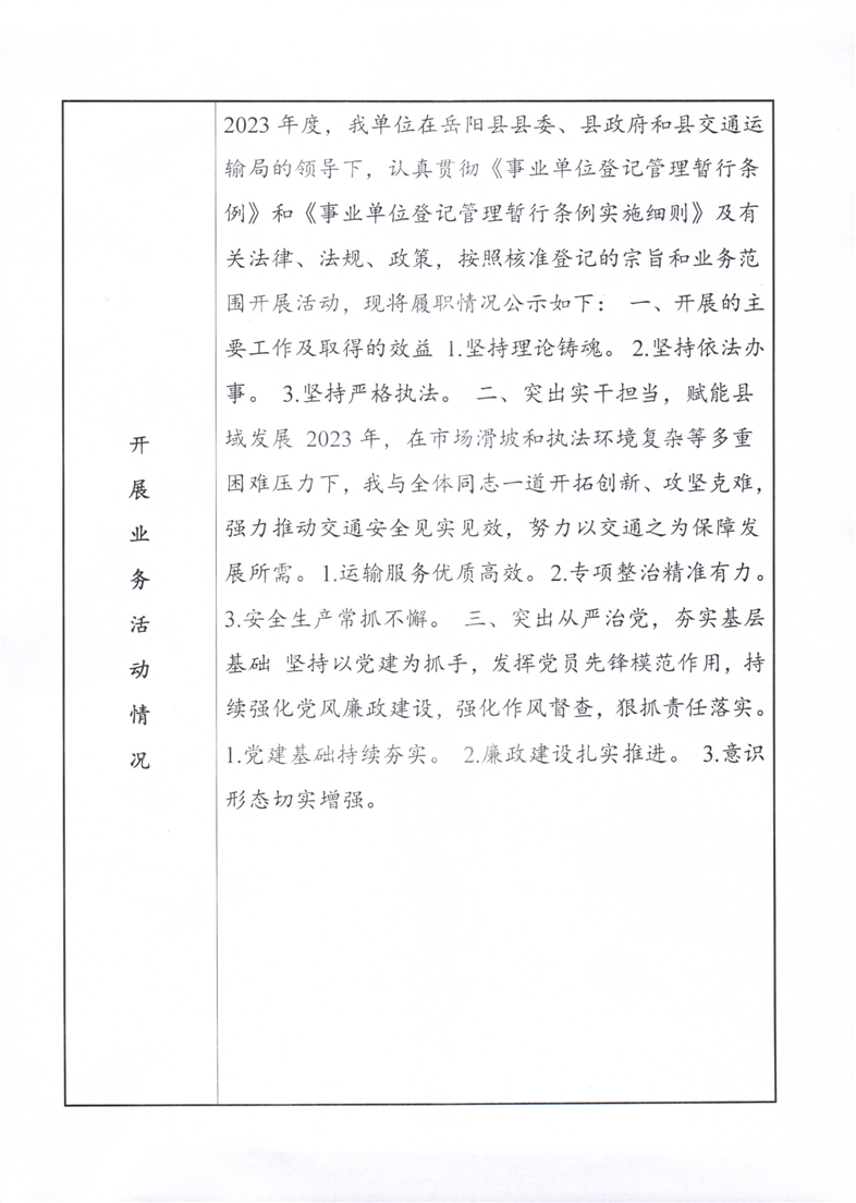 岳阳县道路运输服务中心2023年度事业单位法人年度报告书