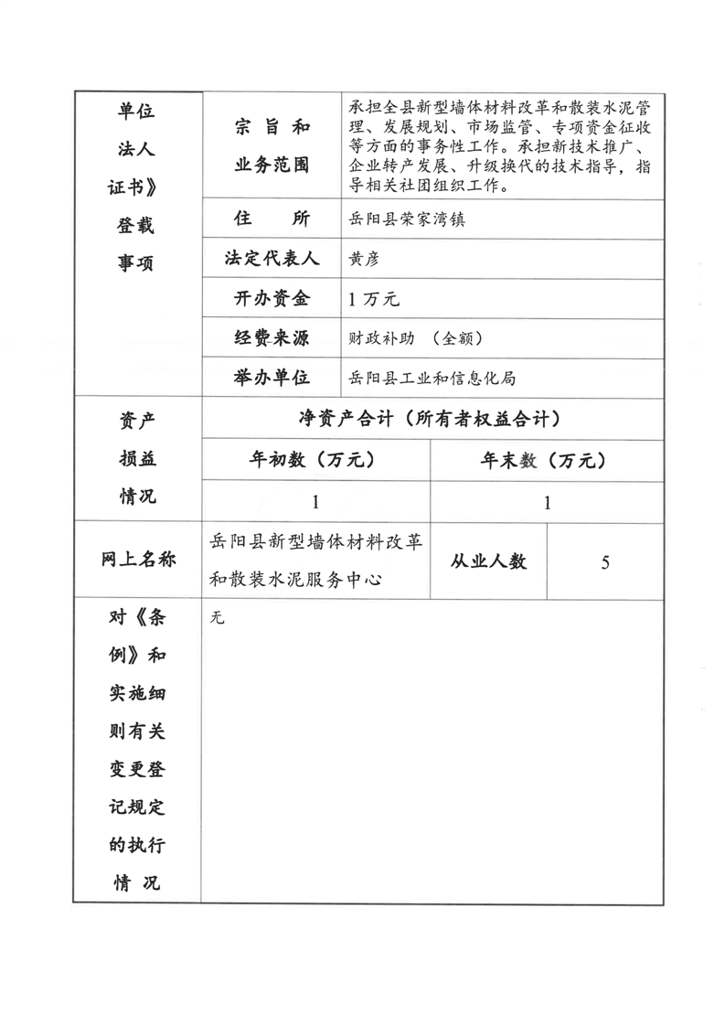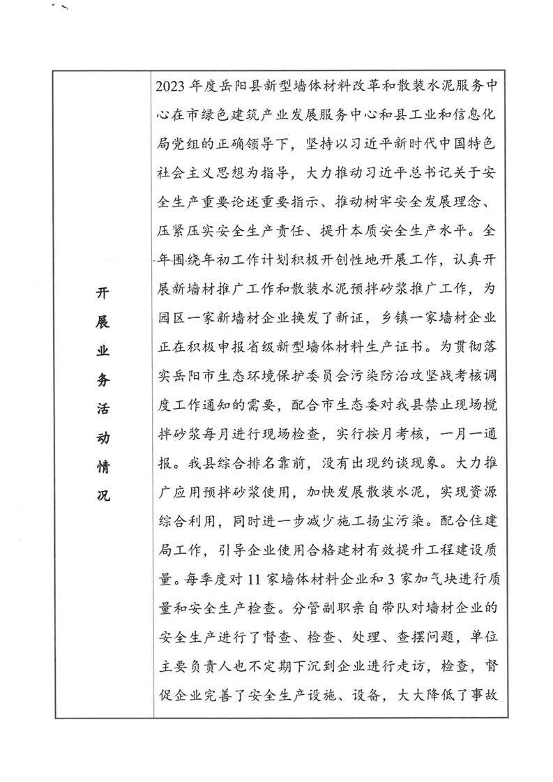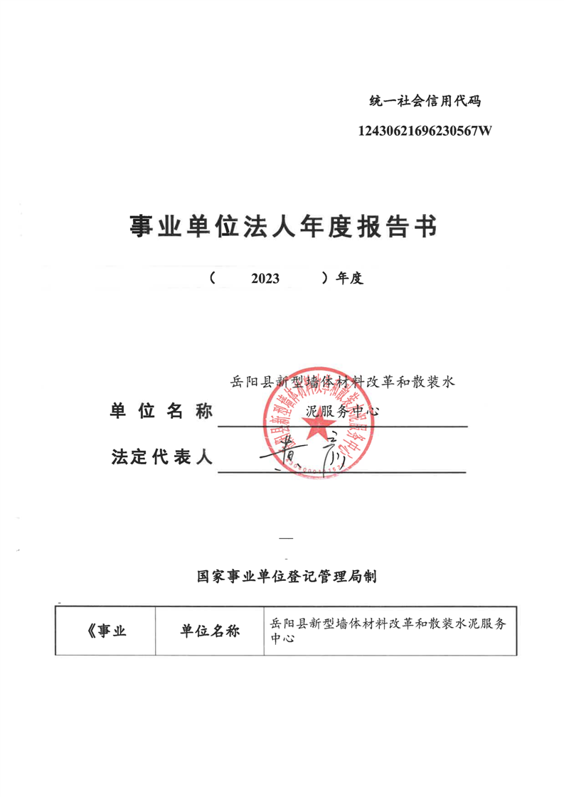 岳阳县新型墙体材料和改革散装水泥服务中心2023年度报告书
