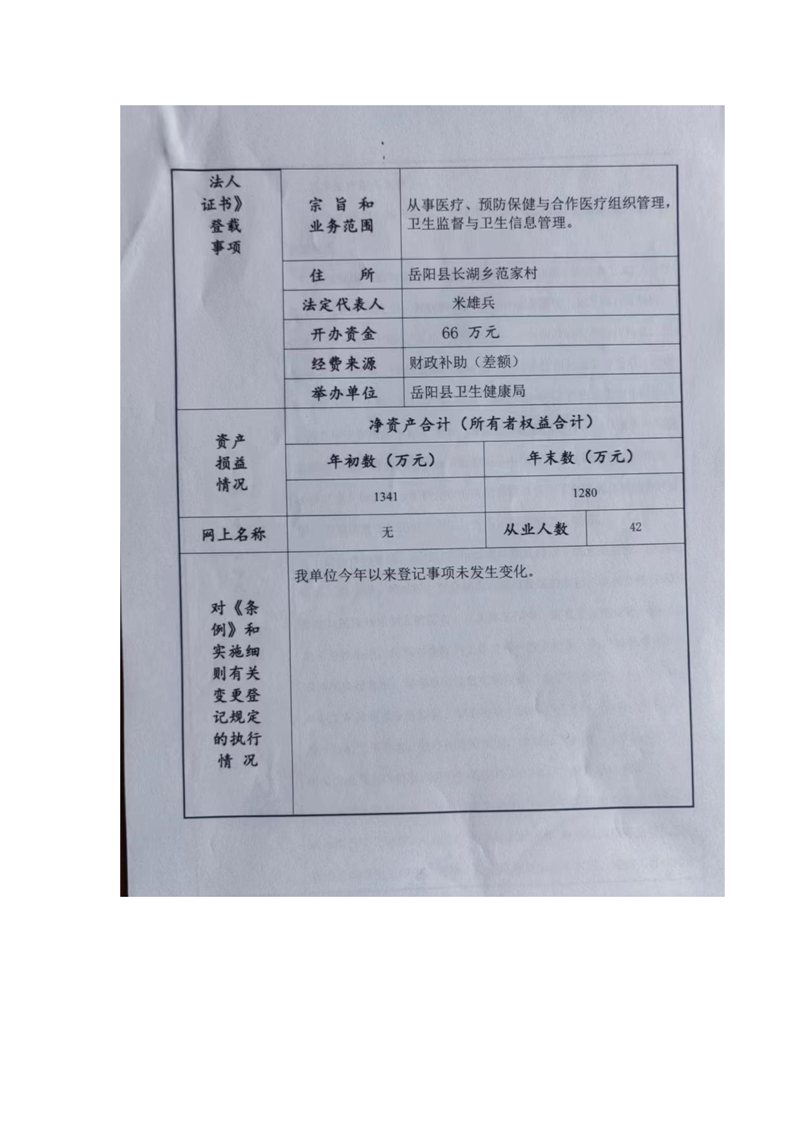 岳阳县卫生健康局长湖乡卫生院年度报告书