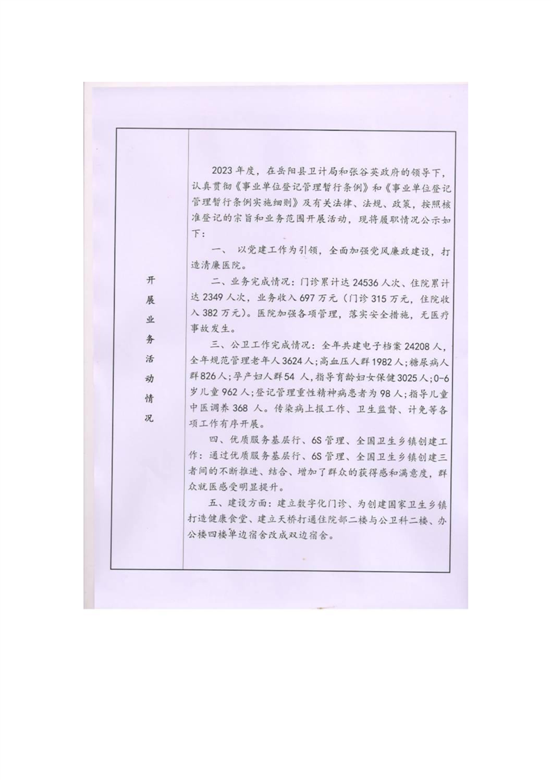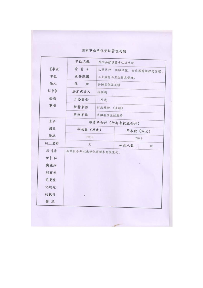 岳阳县卫生健康局张谷英镇卫生院年度报告书