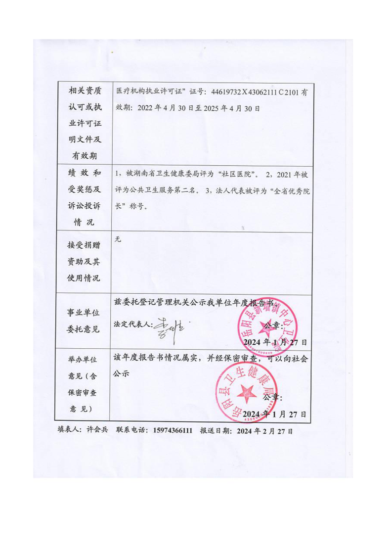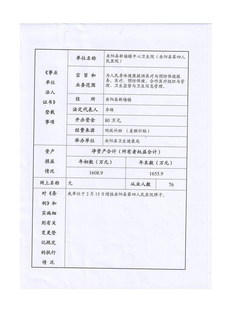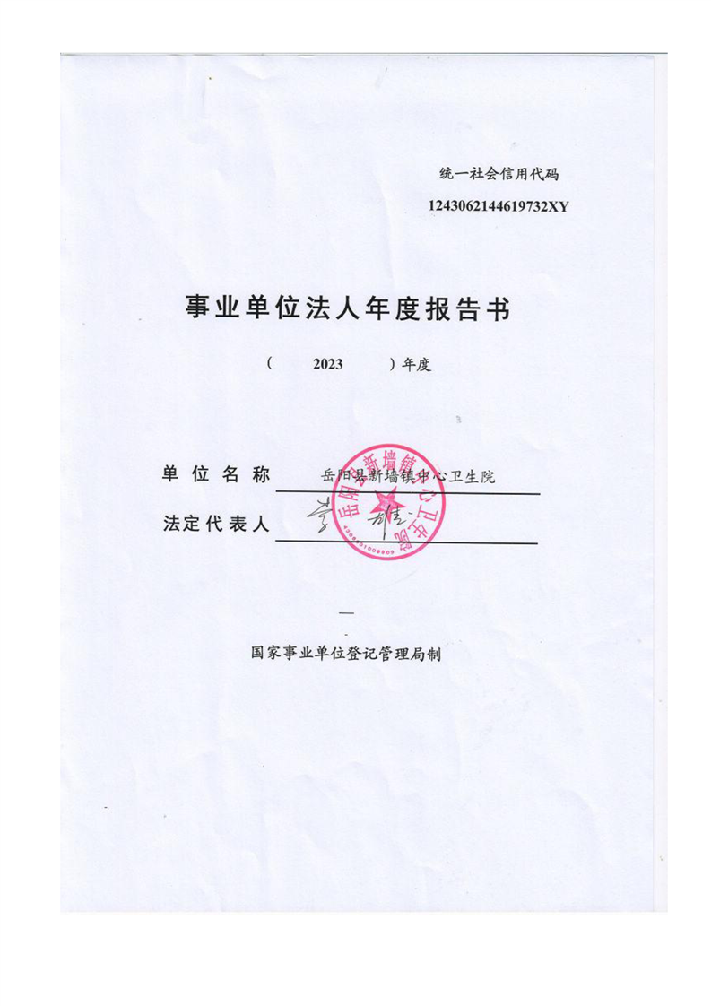 岳阳县卫生健康局新墙镇卫生院年度报告书