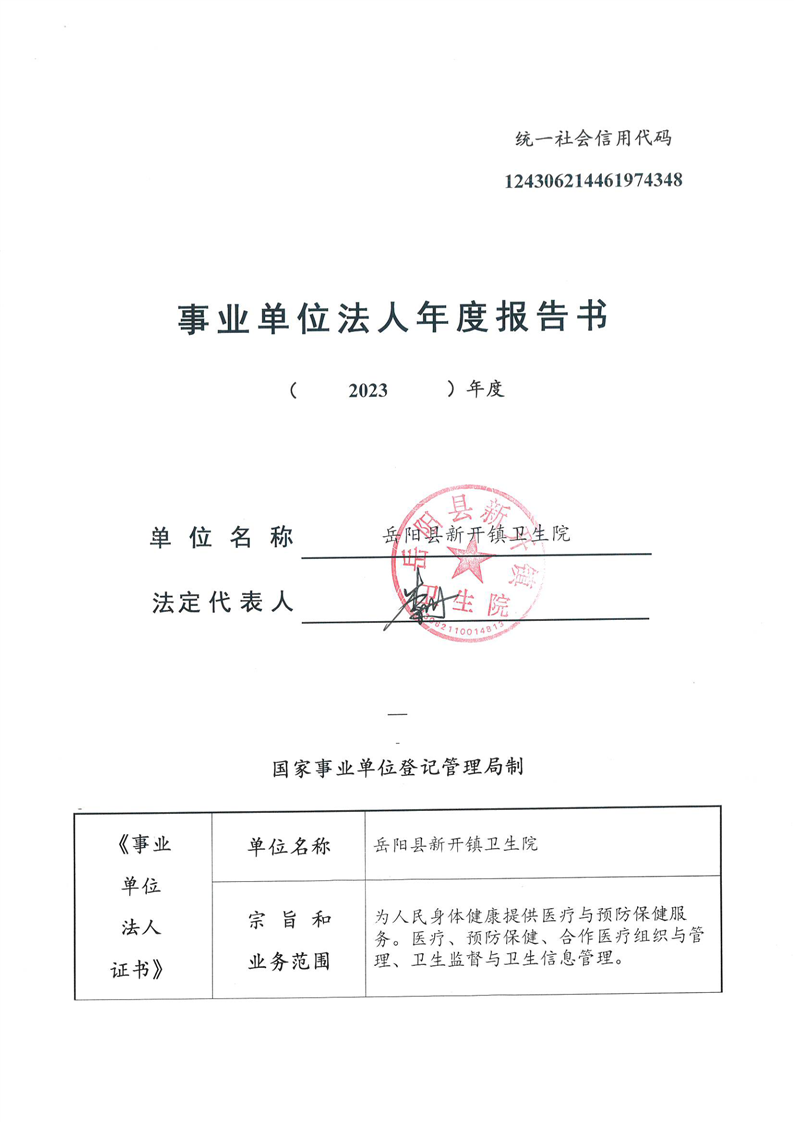 岳阳县卫生健康局新开镇卫生院年度报告书