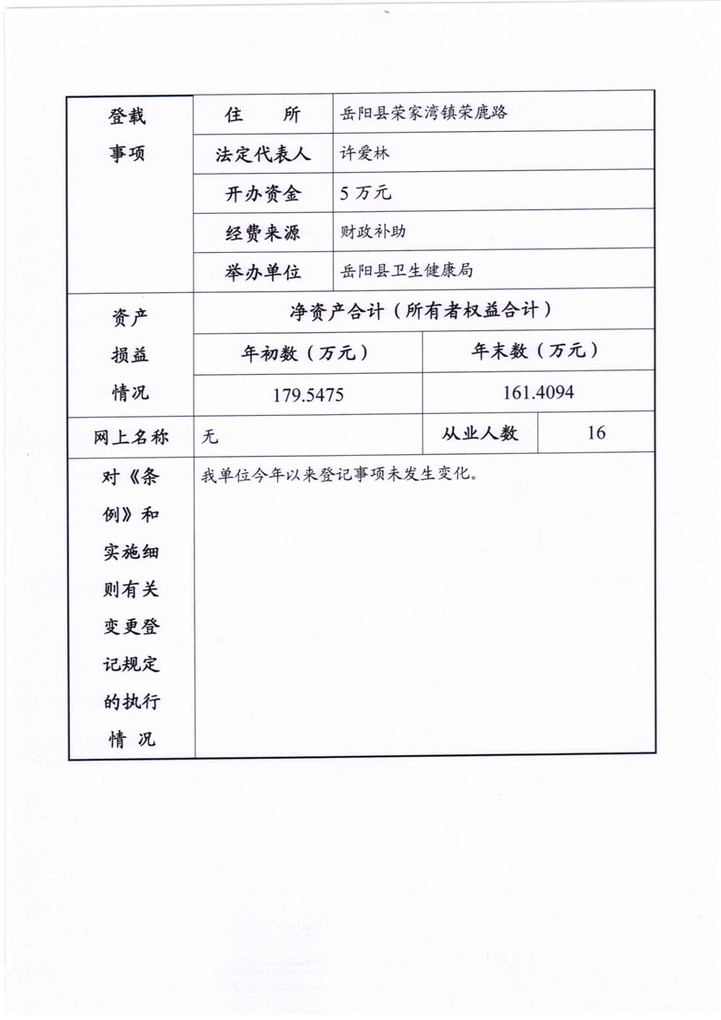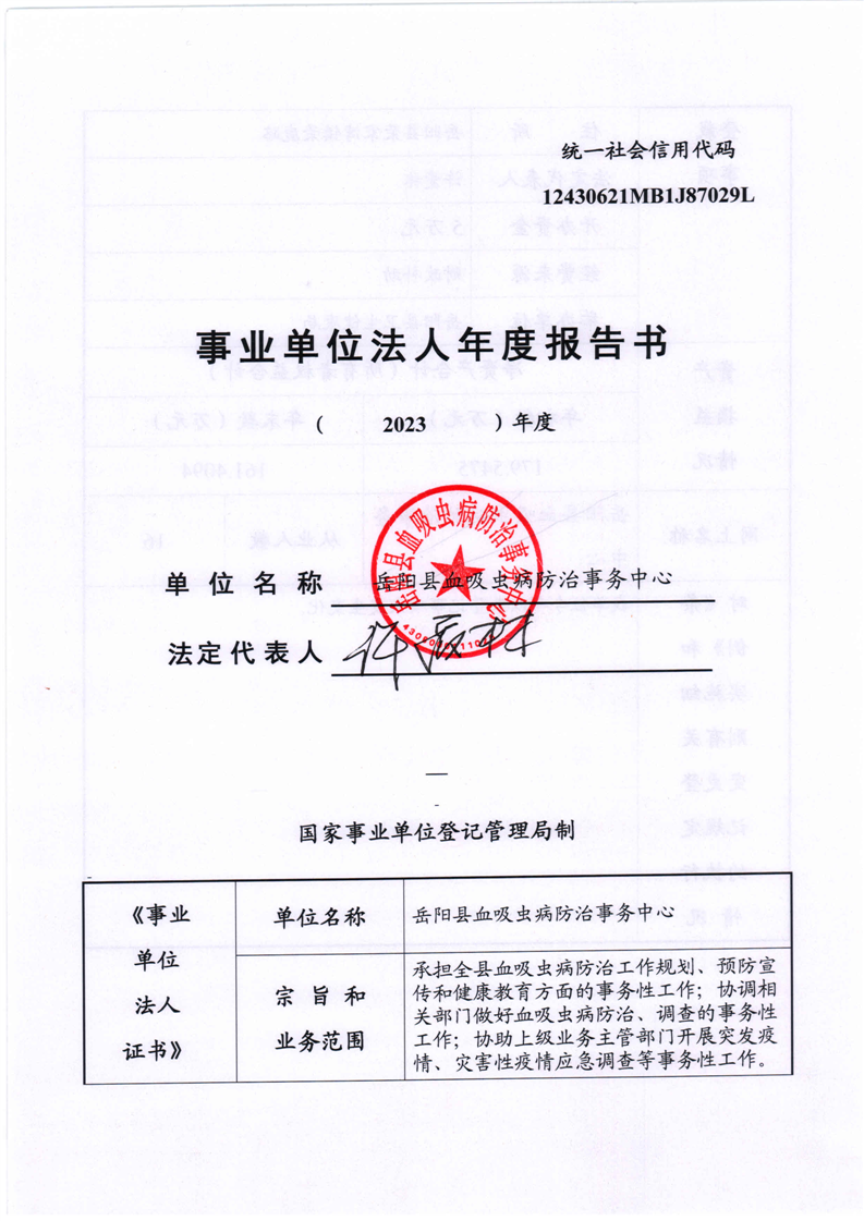 岳阳县卫生健康局县血吸虫病防治事务中心年度报告书