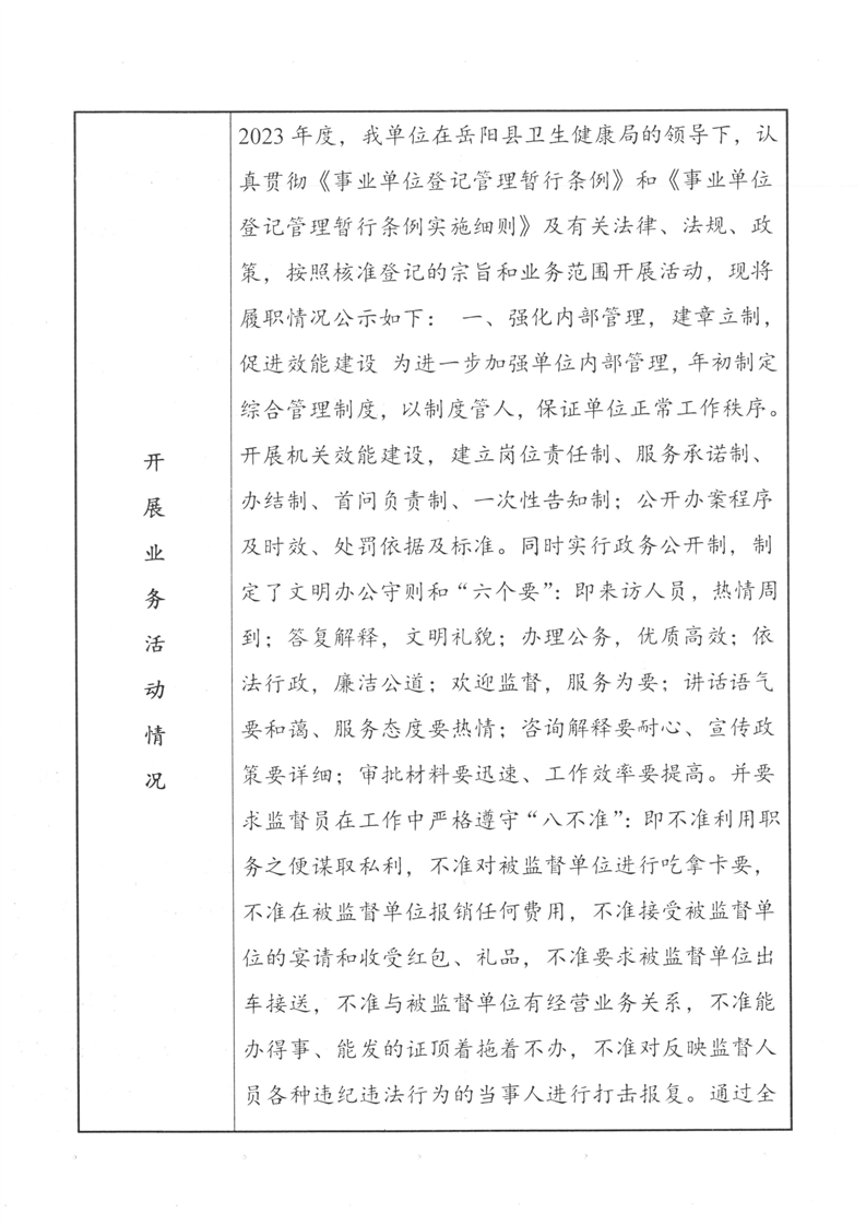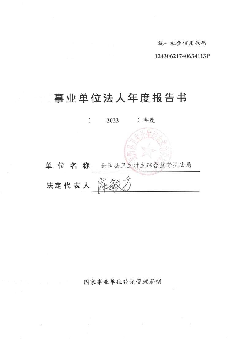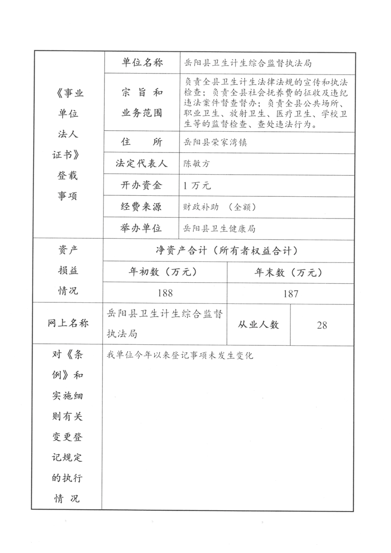 岳阳县卫生健康局县卫生计生综合执法局年度报告书