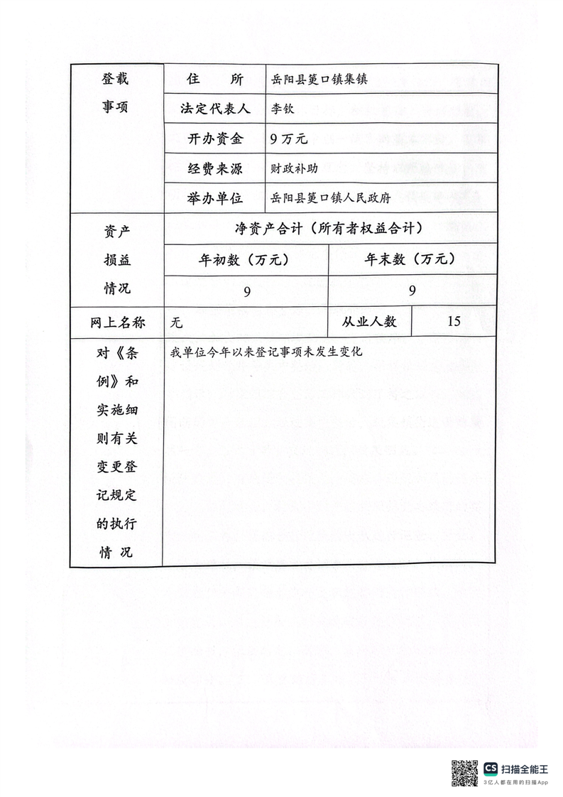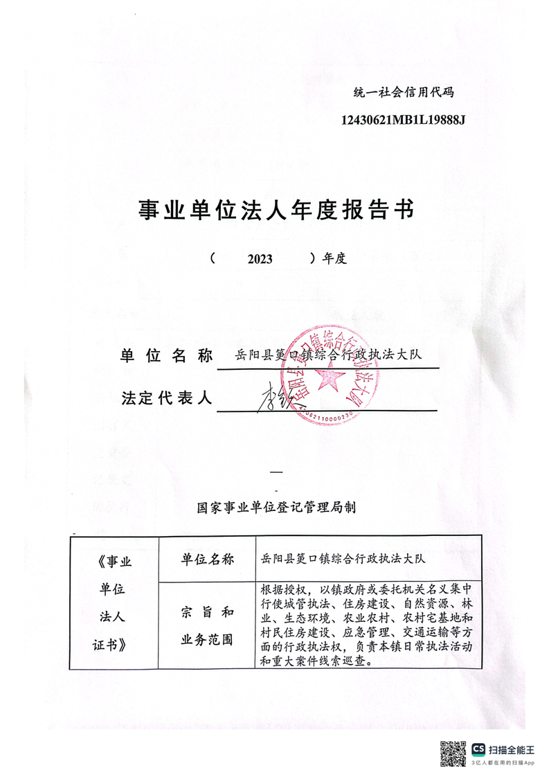 筻口镇事业单位法人年度报告书-综合行政执法大队