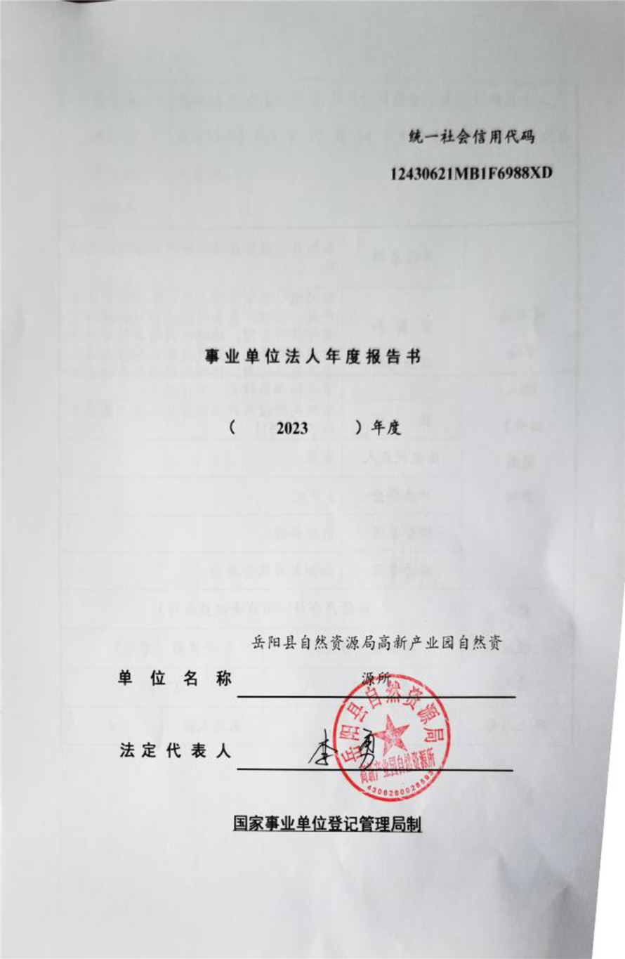 岳阳县自然资源局高新产业园自然资源所事业单位法人年度报告书