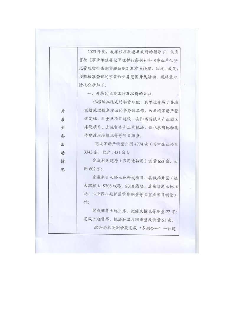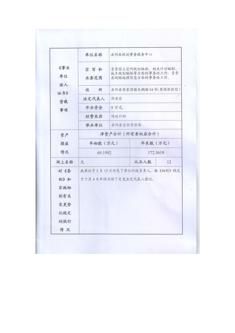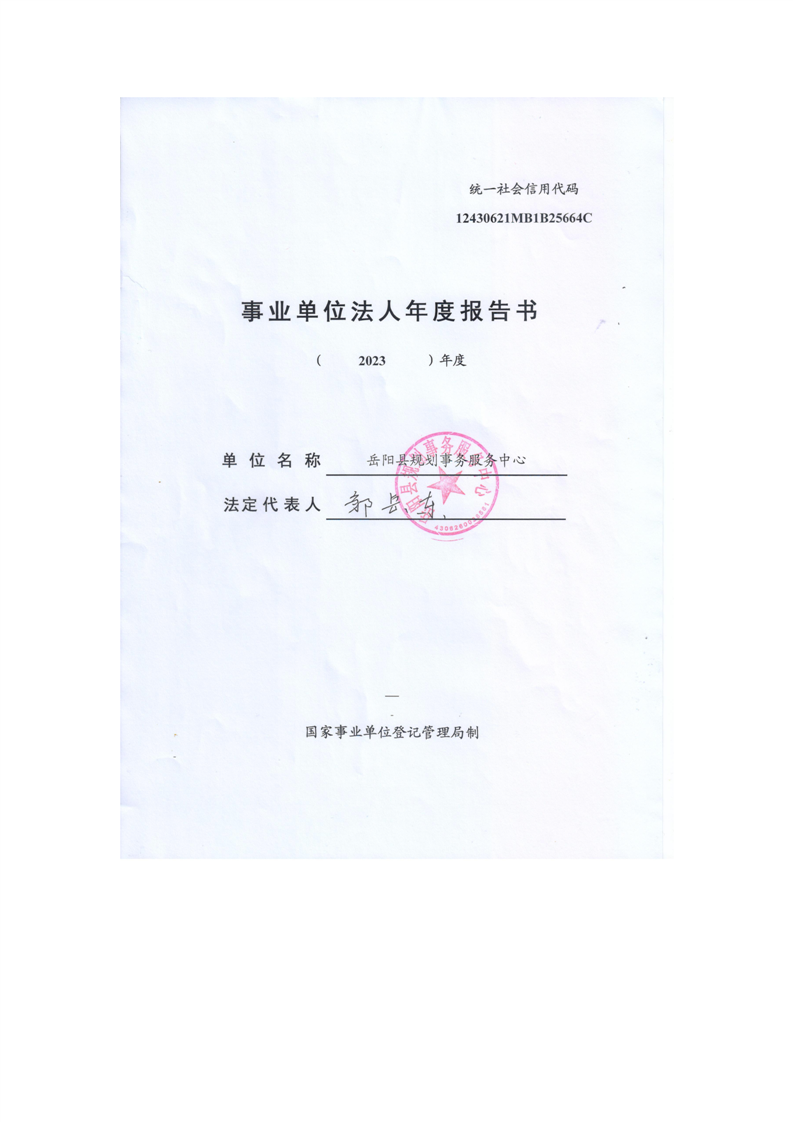 岳阳县规划事务服务中心事业单位法人年度报告书