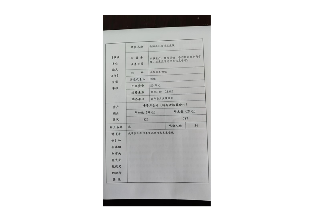 岳阳县卫生健康局毛田镇卫生院年度报告书