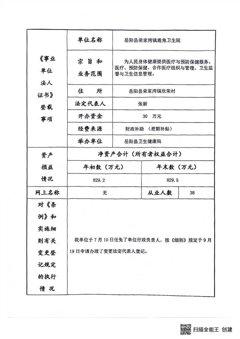 岳阳县卫生健康局鹿角卫生院年度报告书