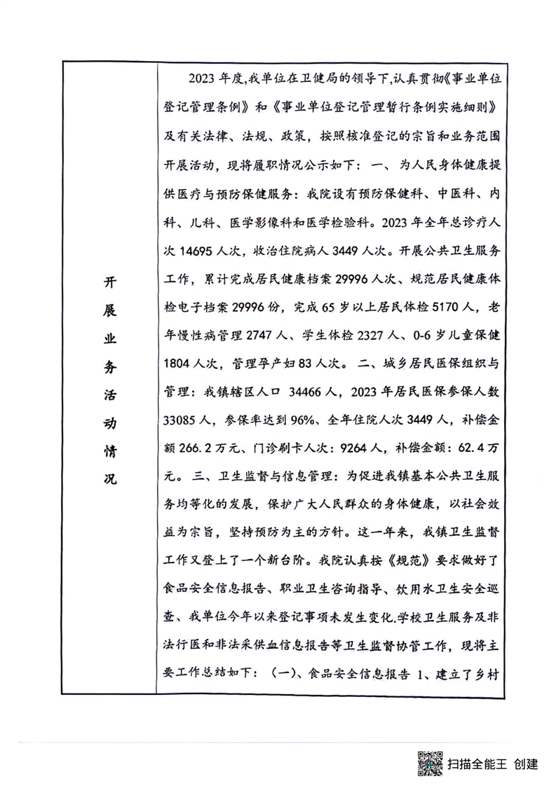 事业单位法人2023年度报告公示