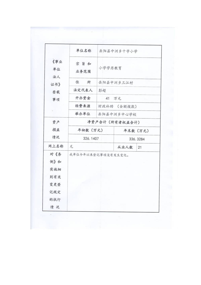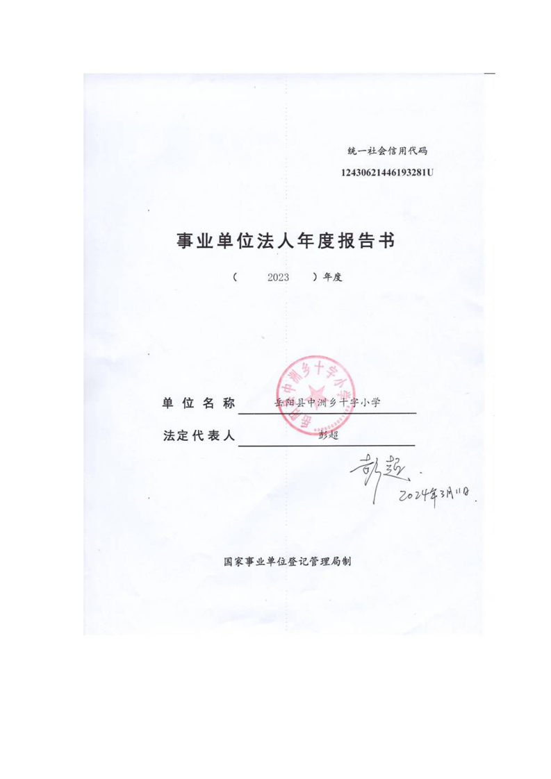 岳阳县中洲乡十字小学2023年法人年度报告书