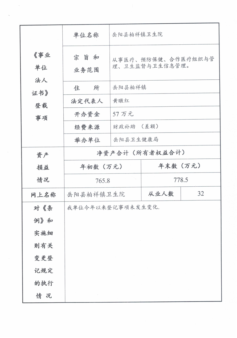 岳阳县卫生健康局柏祥镇卫生院年度报告书