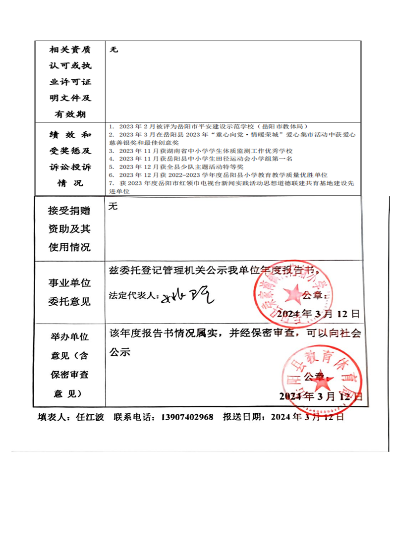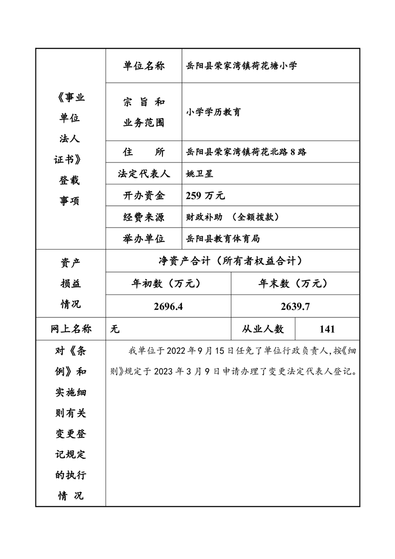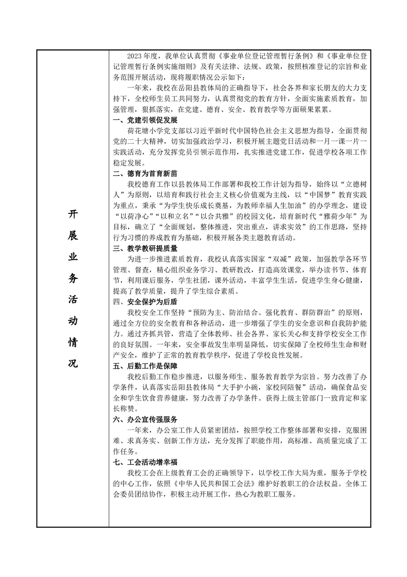 岳阳县荣家湾镇荷花塘小学2023年法人年度报告书