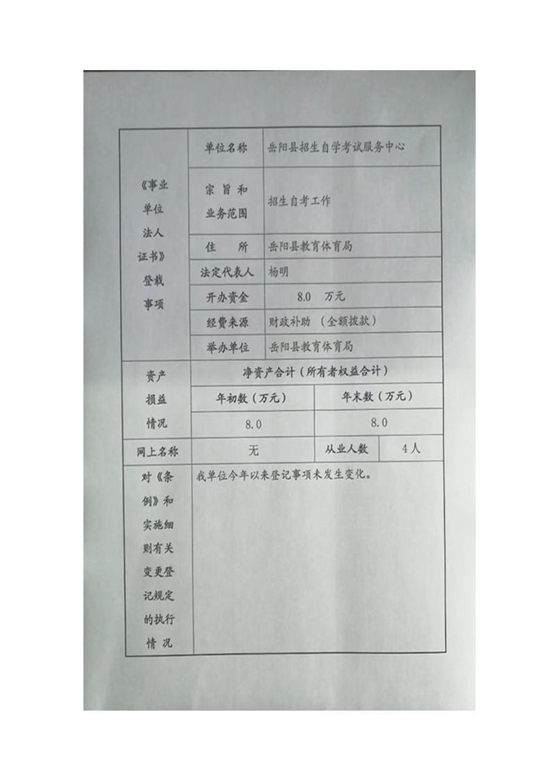 岳阳县招生自学考试服务中心2023年法人年度报告