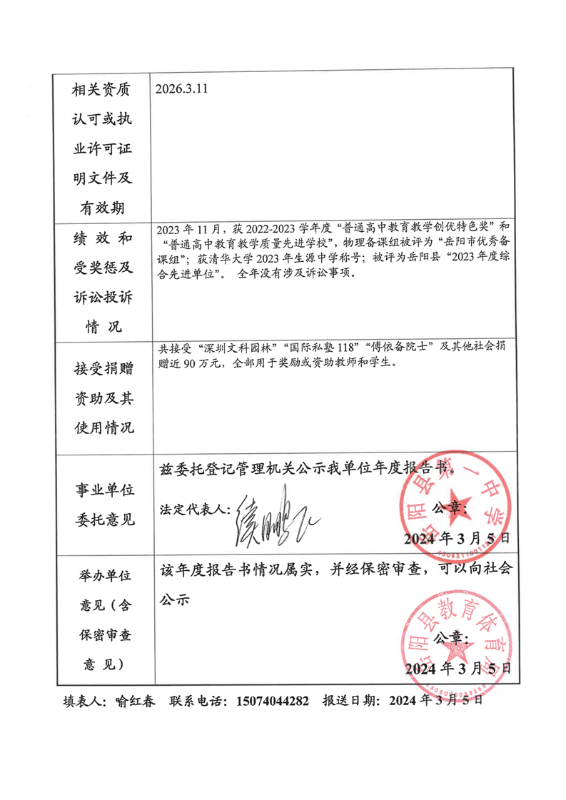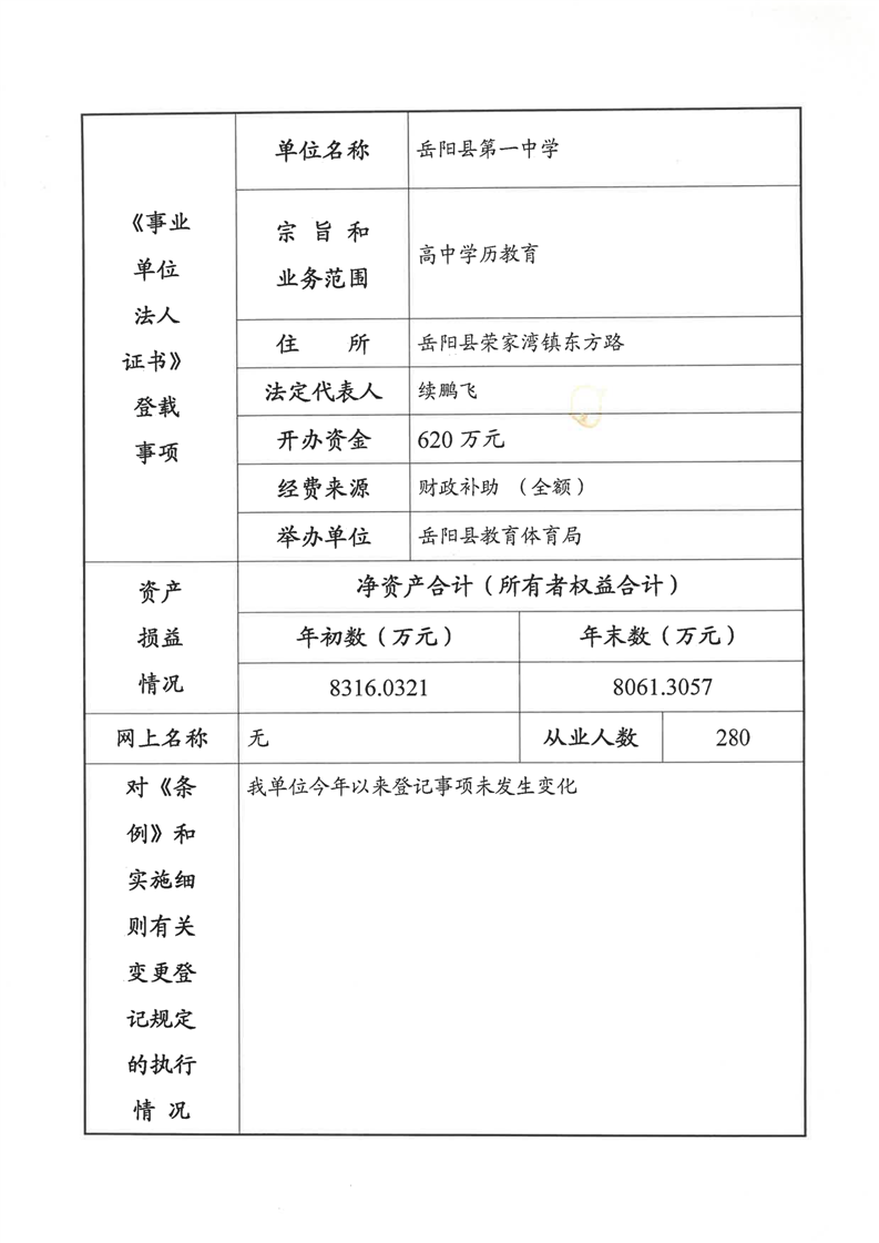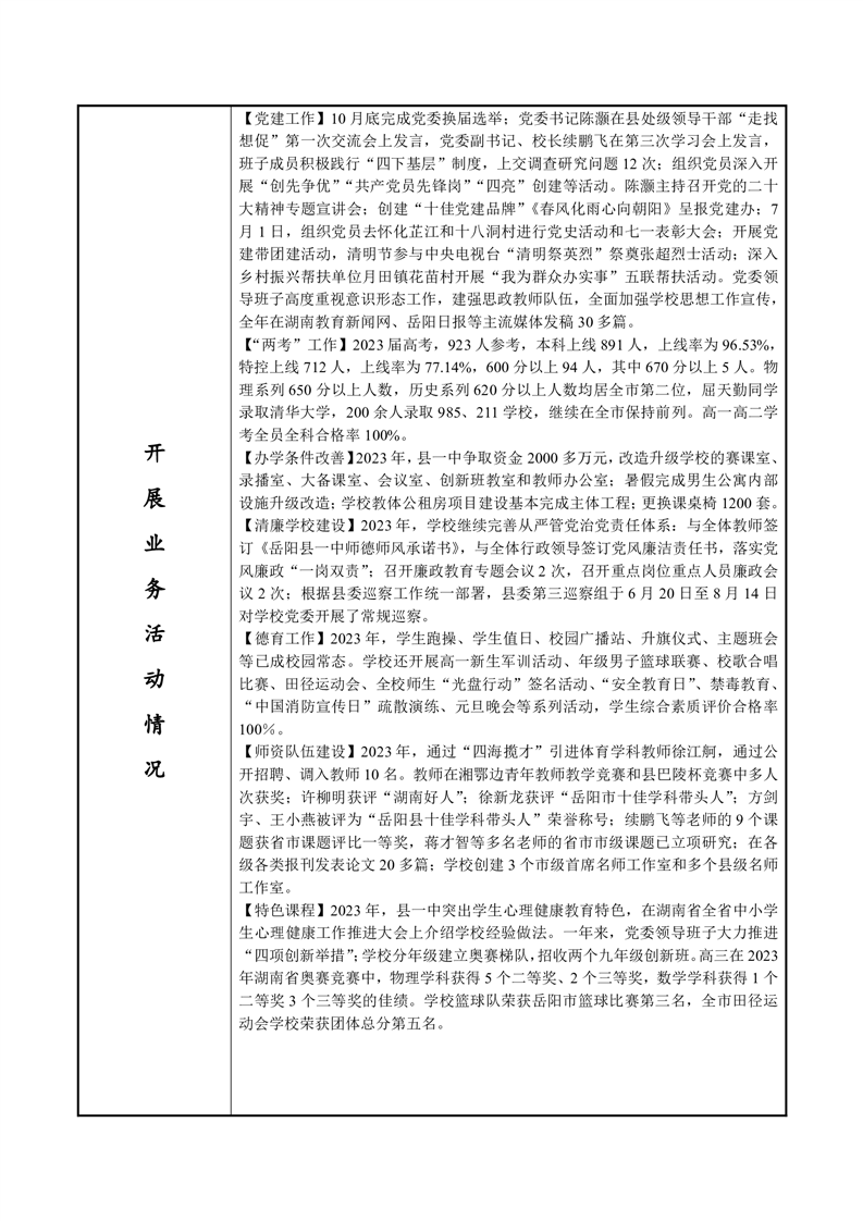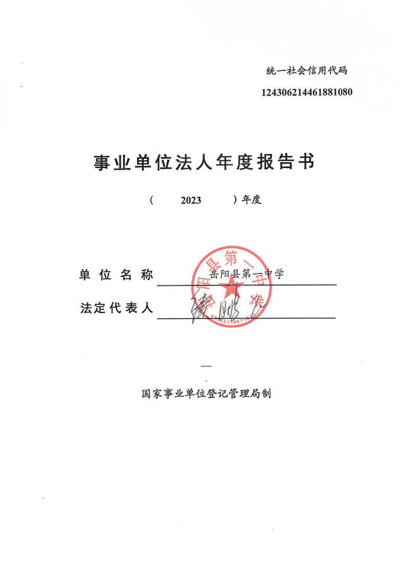岳阳县第一中学2023年法人年度报告