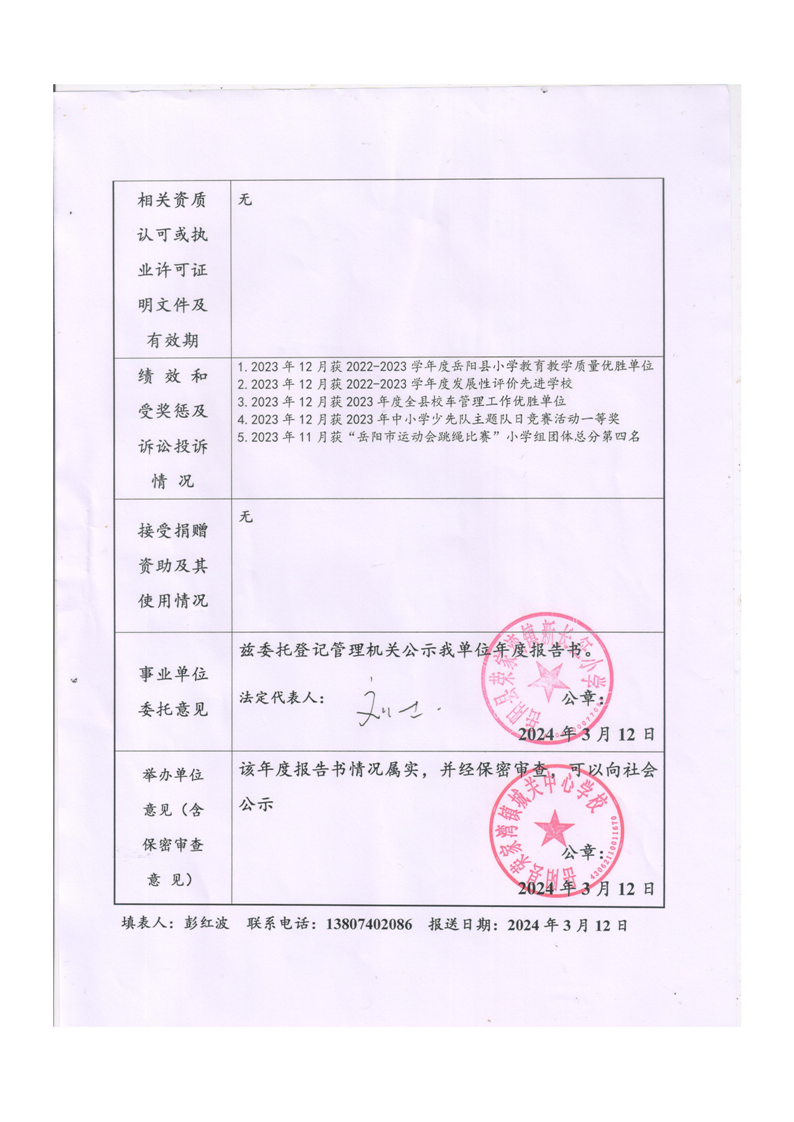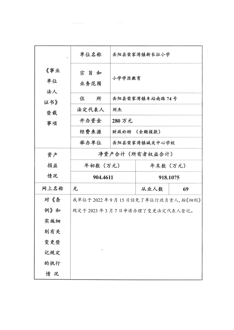 岳阳县荣家湾镇新长征小学2023年法人年度报告书
