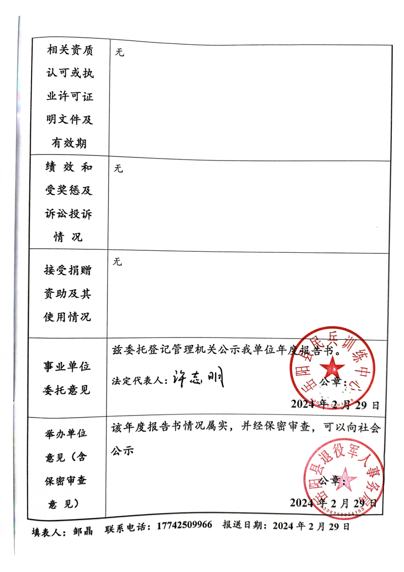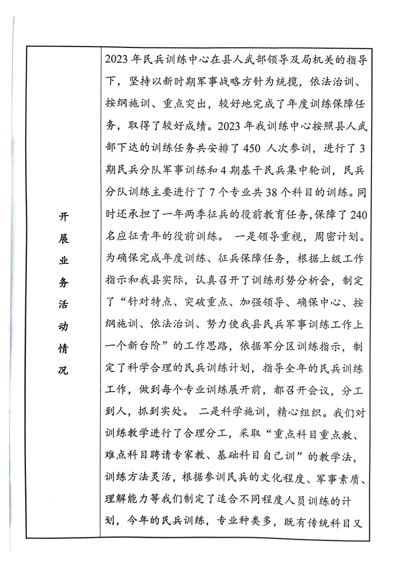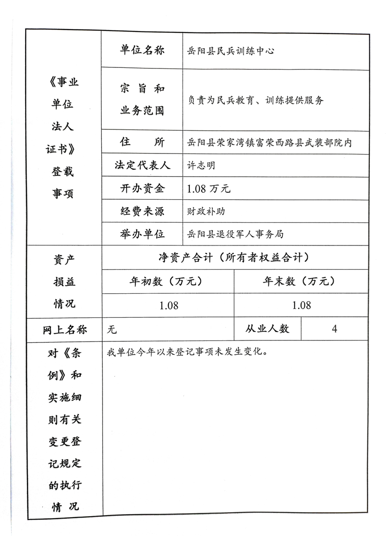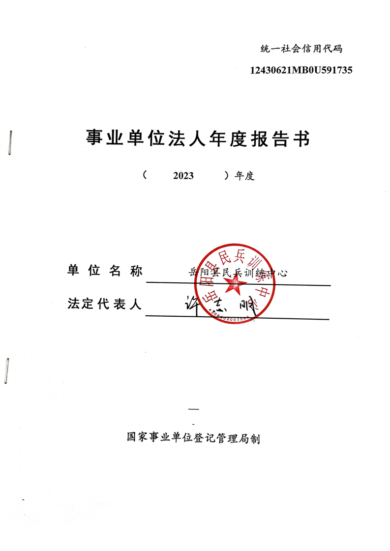 岳阳县民兵训练中心事业单位2023年度法人年度报告书