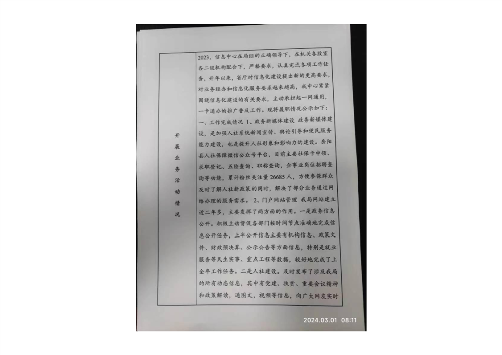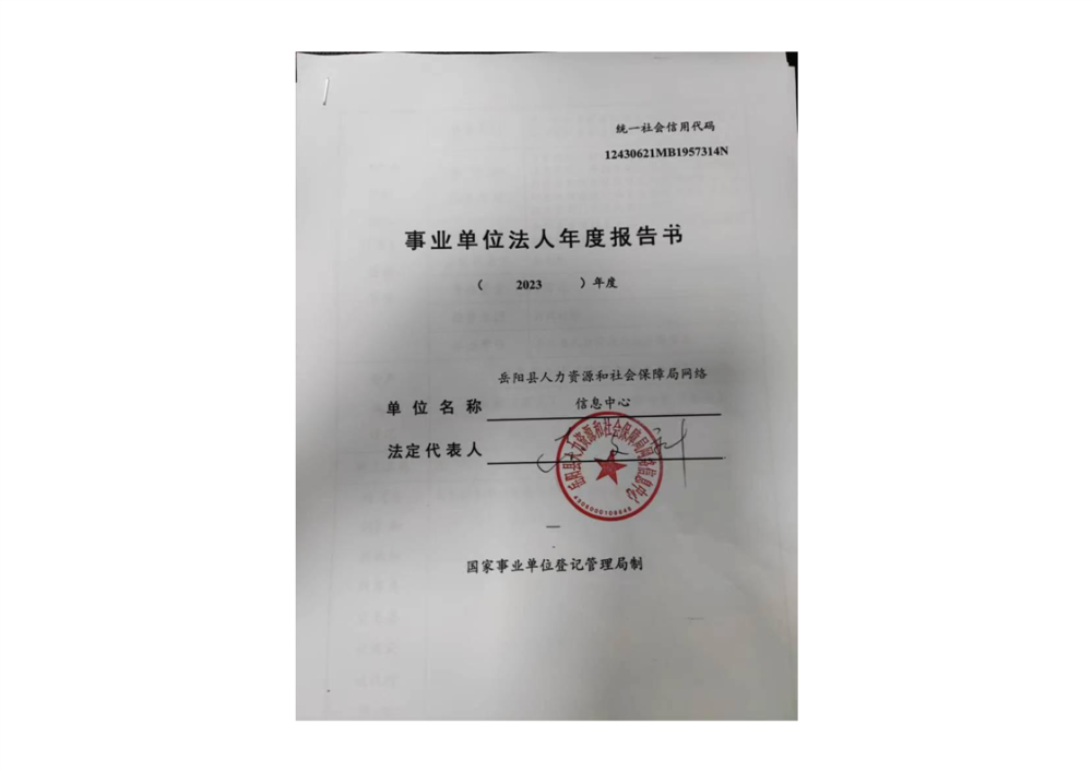 岳阳县人力资源和社会保障局信息网络中心2023年度报告书