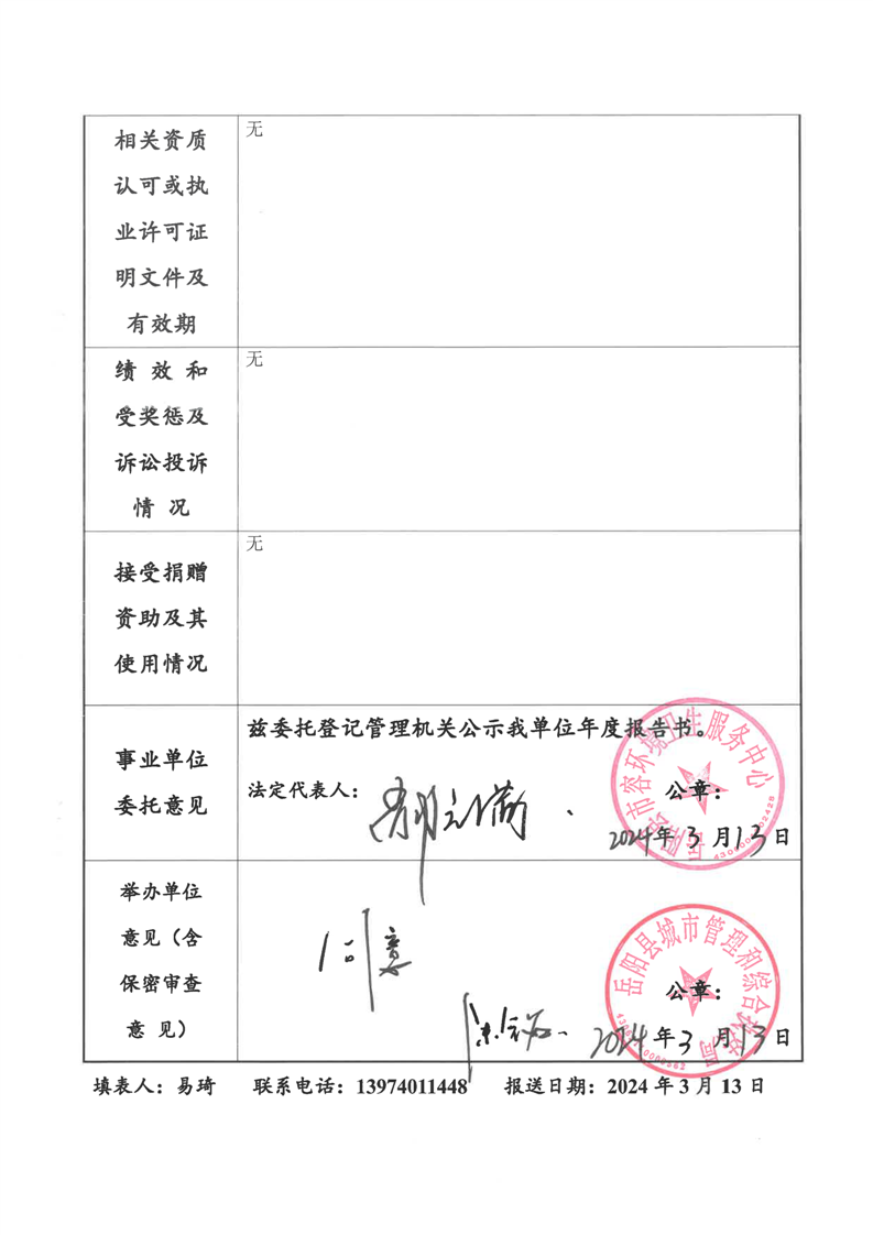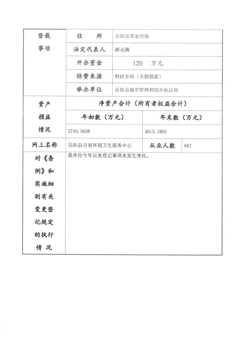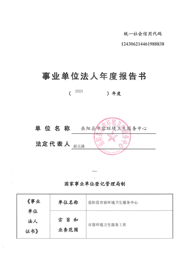 2023年度事业单位法人年度报告书 (岳阳县市容环境卫生服务中心)