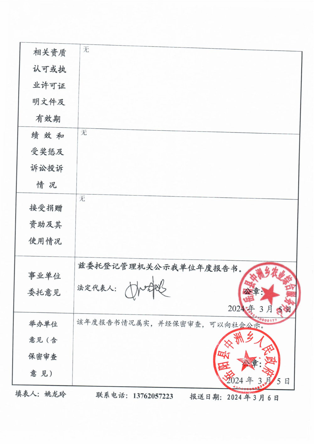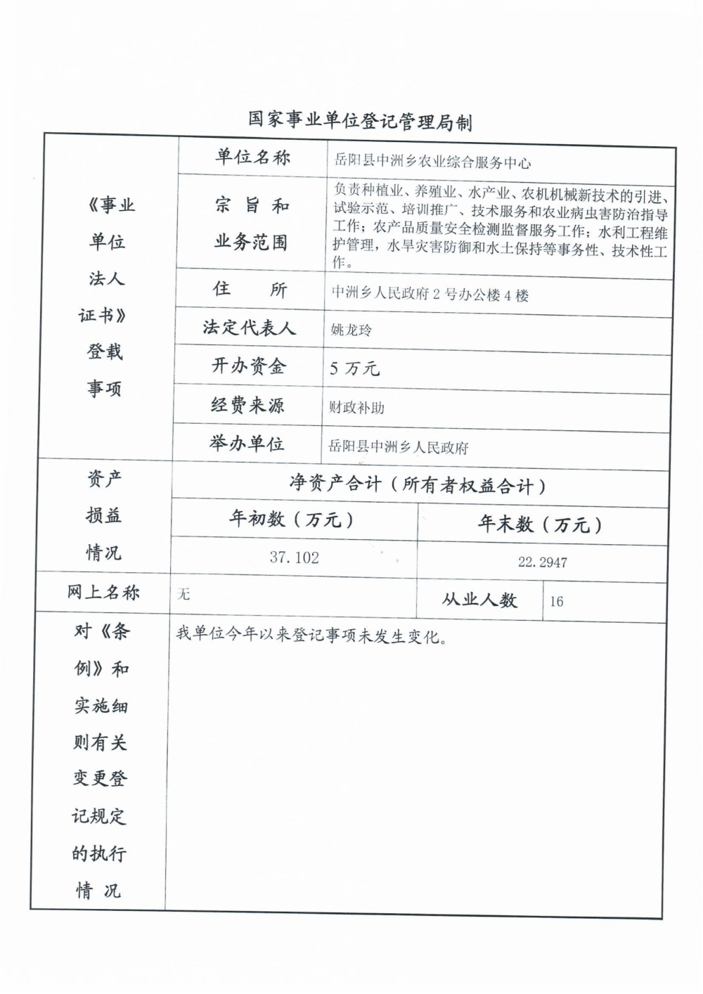 岳阳县中洲乡农业综合服务中心2023年度报告书