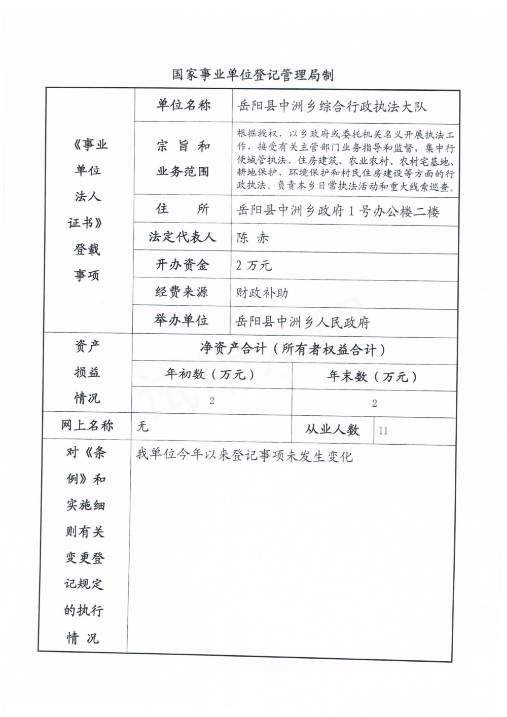 岳阳县中洲乡综合行政执法大队2023年度报告书