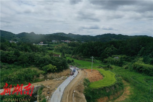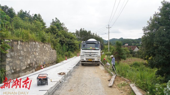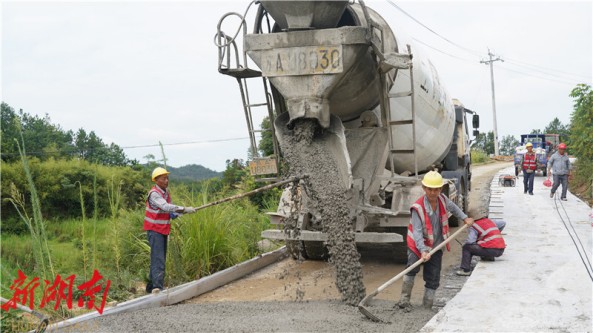 三轴仪隆隆驶过,“滚烫”的混凝土逐渐摊平,与养护工古铜色的皮肤融为一体。这条被汗水反复浸润的乡道,终将成为散落村庄的坚韧纽带,在青山绿水间,托起无数个家庭的生计与远方。
