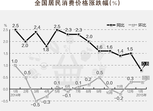 国家统计局10发布的1-份全国居民消费价格指数(CPI)和工业生产者出厂价格指数(PPI)数据显示:CPI环比上涨0.3%,同比上涨0.8%;PPI环比下降1.1%,同比下降4.3%。CPI同比涨幅创出2009-11-以来的新低。PPI连续35个-出现负增长,降幅有所扩大,这表明通货紧缩的压力进一步加大。