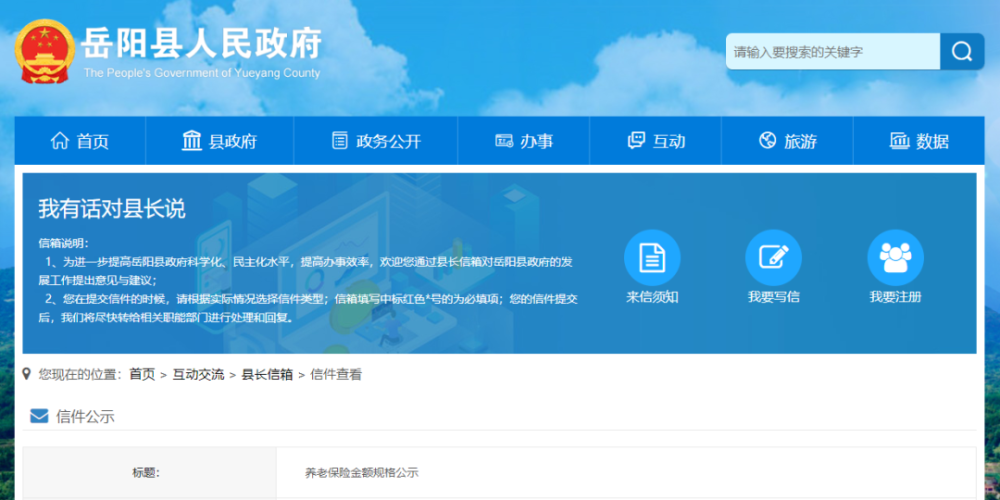 县长信箱 来信人:网友 内容:您好,我想咨询一下岳阳县城乡居民养老保险每月发放具体金额和规格档数,我在网上没有找到相关文件。 回复部门:岳阳县人力资源和社会保障局 回复内容: 尊敬的市民: 您好!您反映的岳阳县城乡居民养老保险每月发放具体金额和规格档数相关诉求已收悉,现就有关情况回复如下: 湖南省城乡居民养老保险缴费标准目前设定为每年300元、400元、500元、600元、700元、800元、900元、1000元、1500元、2000元、2500元、3000元、4000元、5000元、6000元十五个档次,对重度残疾、低保对象、特困人员、返贫致贫人员等困难群体,保留最低档100元的缴费档次,享受政府代缴。参保人员月享受养老保险待遇=基础养老金+个人账户养老金[个人账户养老金=个人账户累计储存额(含息)÷139]。 如后续还有疑问可电话咨询:0730-7607866(社会保险服务中心)。 感谢您对我们工作的理解和支持。 岳阳县人力资源和社会保障局 2025年1月24日 |
