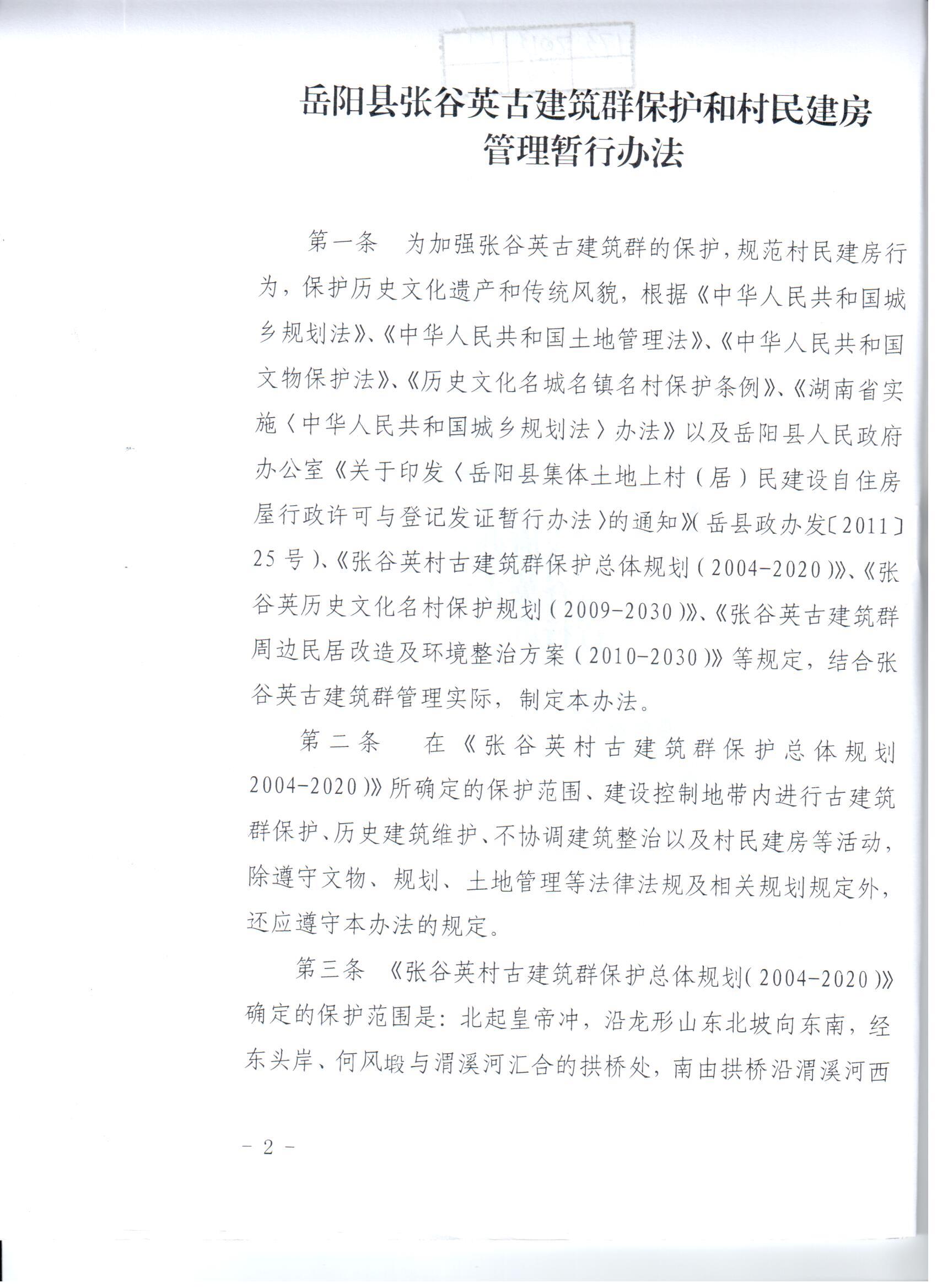 岳阳县张谷英古建筑群保护和村民建房管理暂行办法