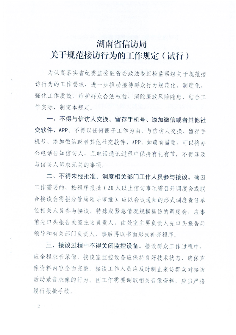 湖南省信访局关于规范接访行为的工作规定(试行)