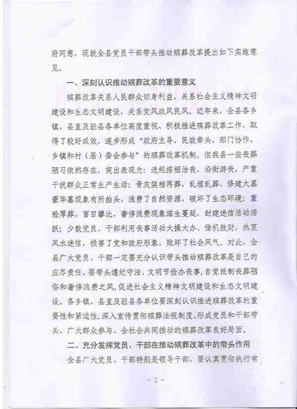 关于党员干部带头推动殡葬改革的实施意见