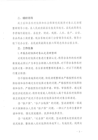 岳阳县农村低保和社会保障兜底脱贫对象认定清理整顿工作方案