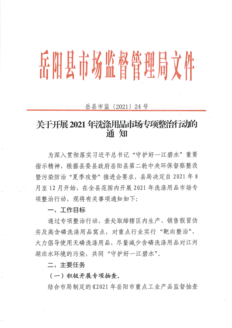 岳阳县市场局开展2021年洗涤用品市场专项整治行动方案