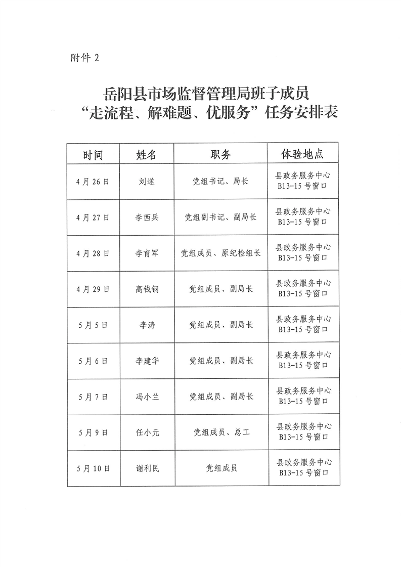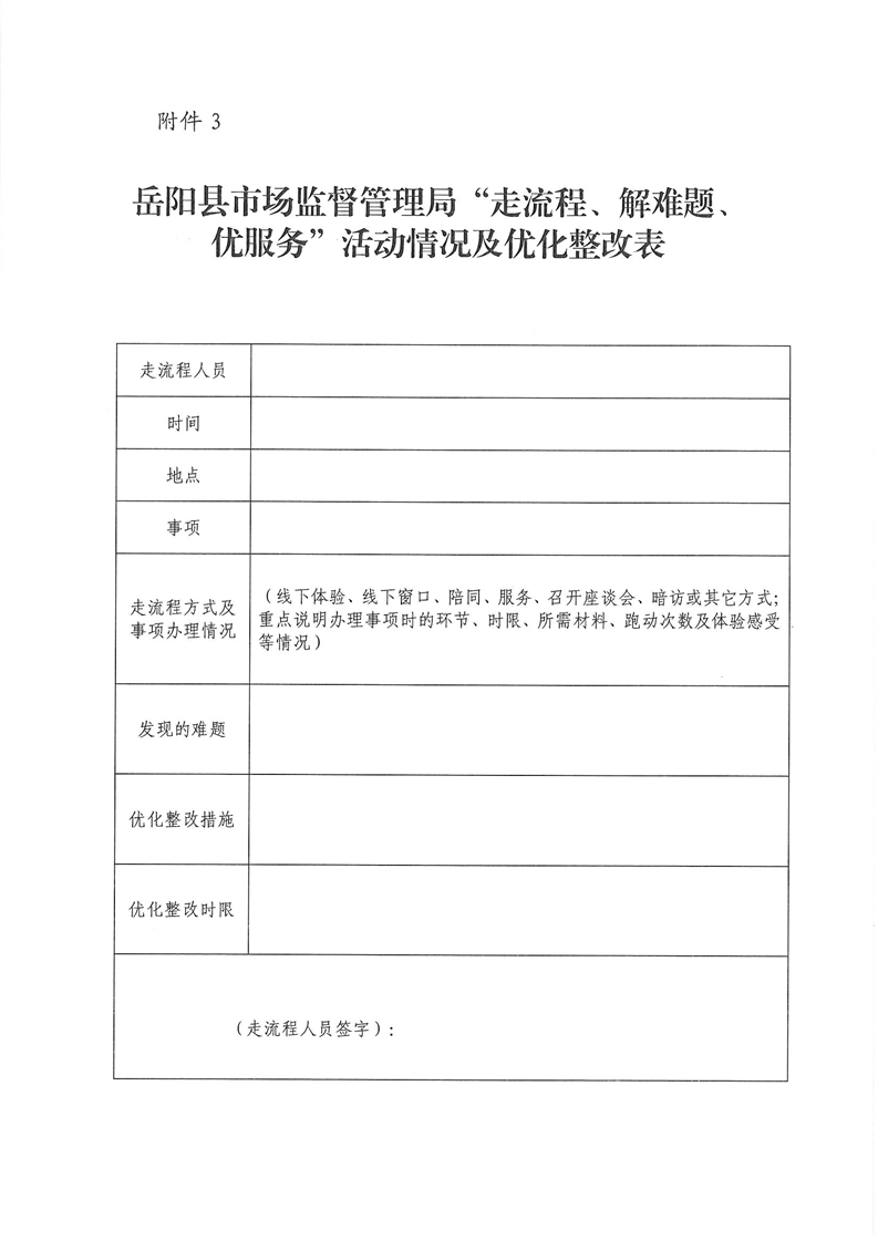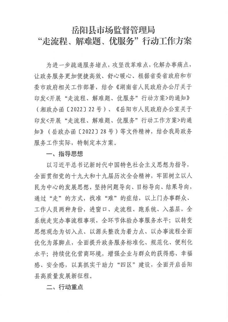 关于印发《岳阳县市场监督管理局“走流程、解难题、优服务”行动工作方案》的通知