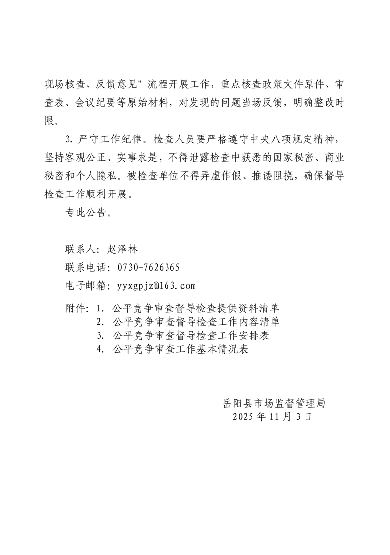 关于开展2025年岳阳县公平竞争审查督导检查的公告