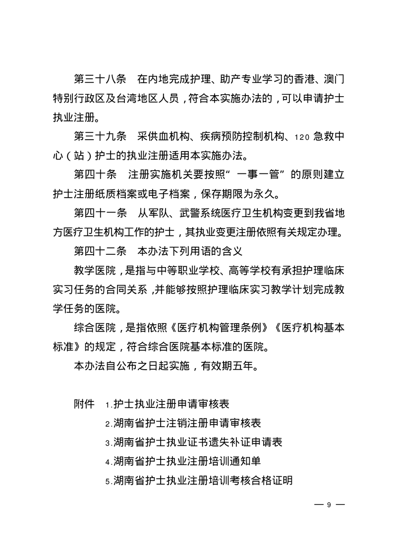 关于印发《湖南省护士执业注册管理实施办法》 的通知
