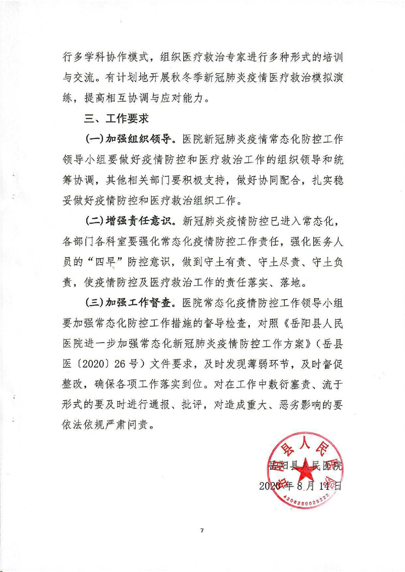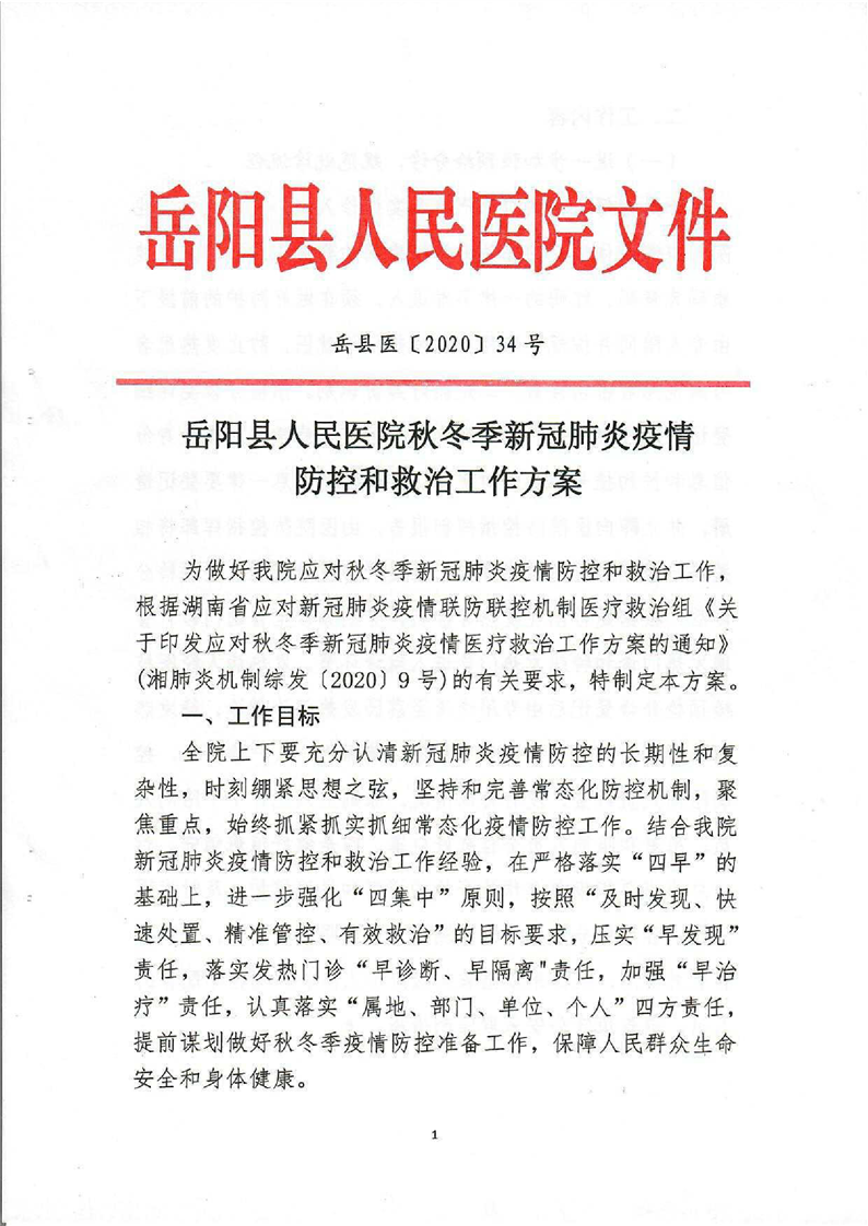 岳阳县人民医院秋冬季新冠肺炎疫情防控和救治工作方案