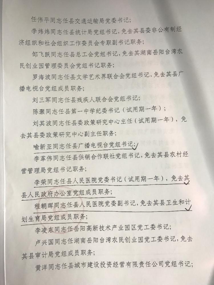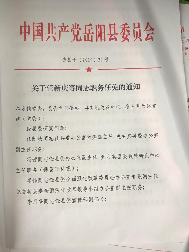 关于任新庆等同志职务任免通知(李荣、程朝晖)
