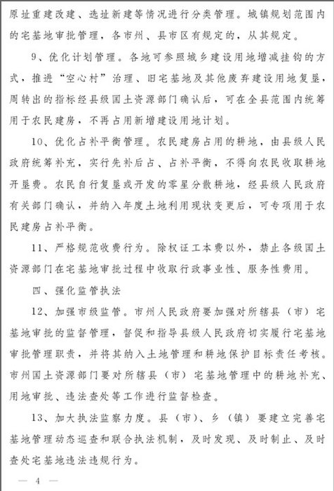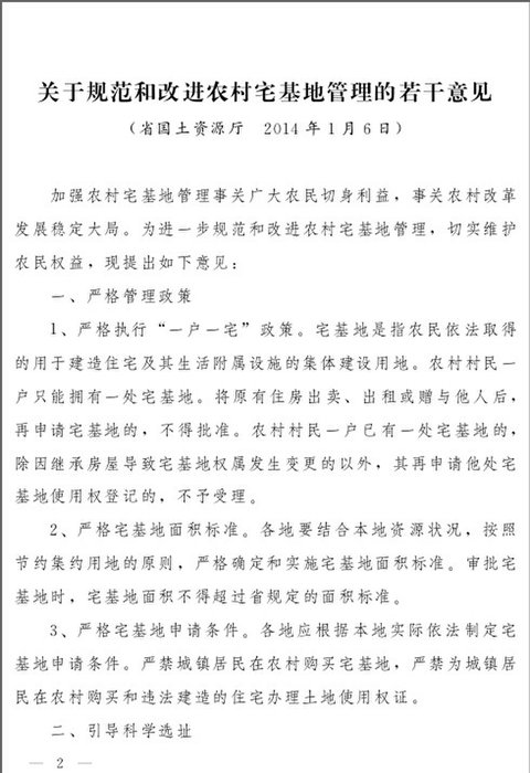 关于规范和改进农村宅基地管理的若干意见