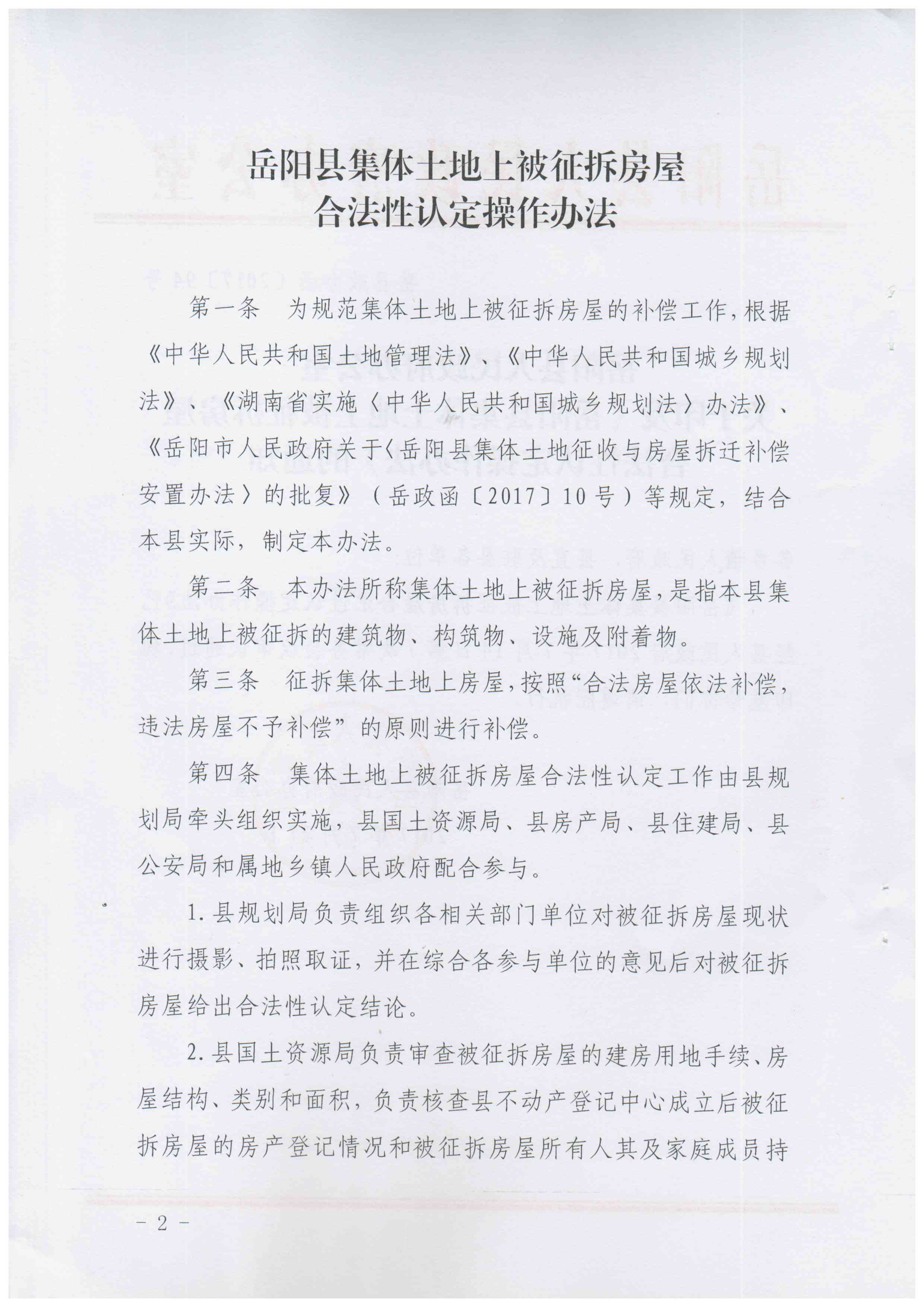岳阳县集体土地上被征拆房屋合法性认定操作办法