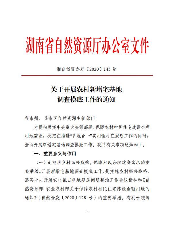 关于开展农村新增宅基地调查摸底工作的通知
