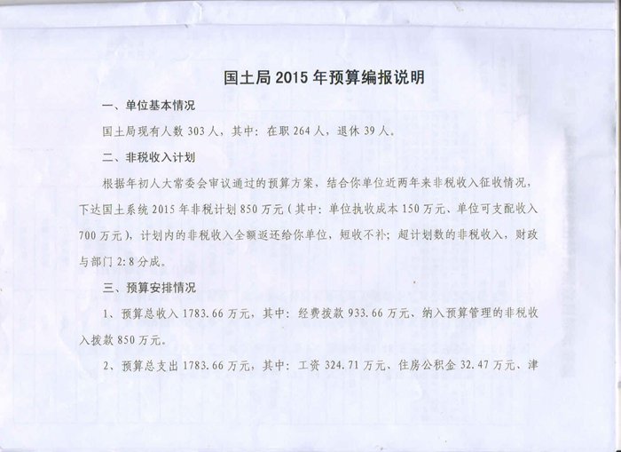 国土局2015年预算编报说明