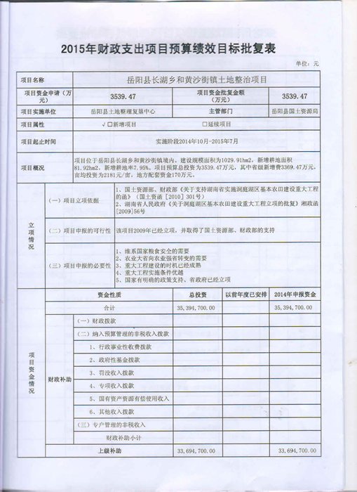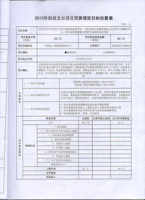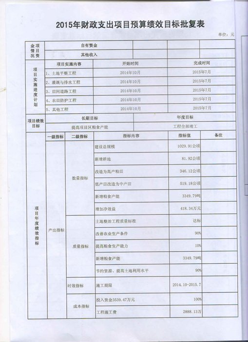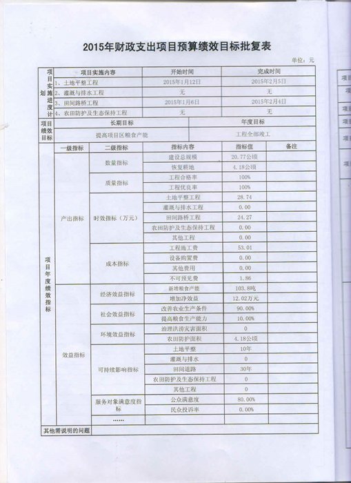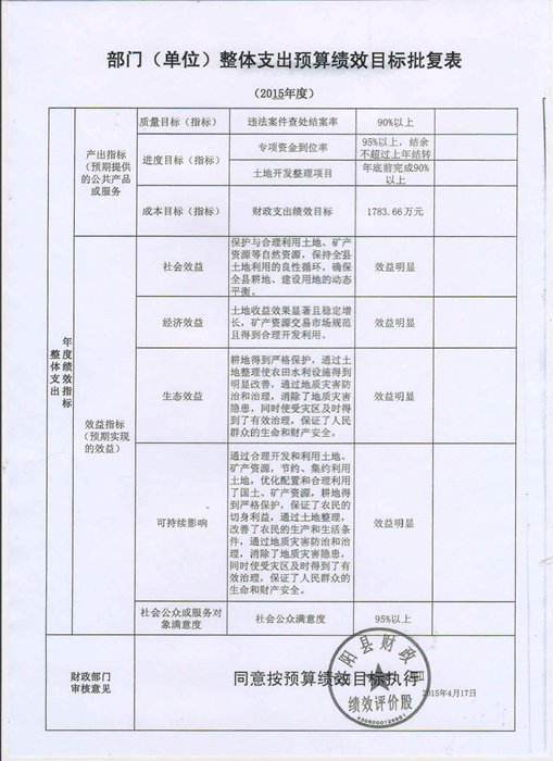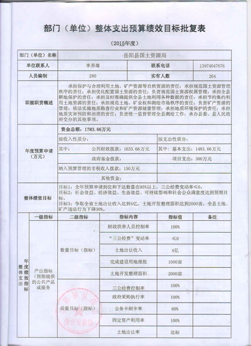 2015年度部门(单位)整体支出预算绩效目标批复表