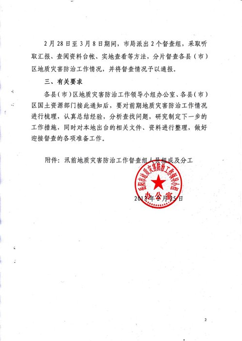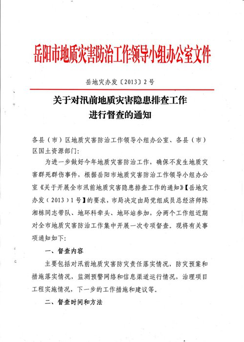 关于对汛前地质灾害隐患排查工作进行督查的通知