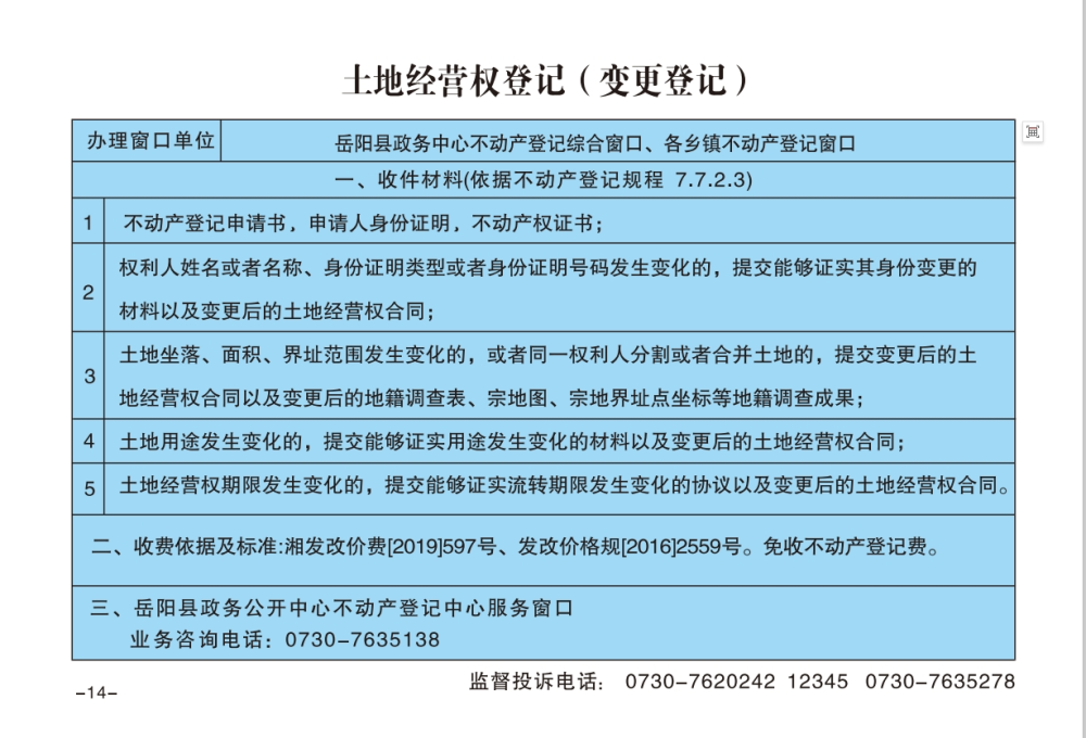 土地经营权登记(变更登记)办事指南