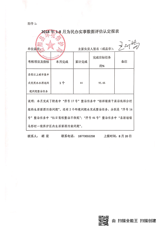 2018年1-8月为民办实事数据评估认定报表